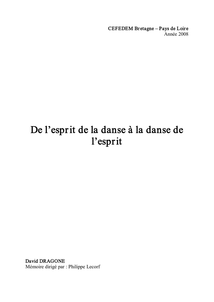 CEFEDEM Br etagne – Pays de Loir e Année 2008 De l’espr it de la danse à la danse de l’espr it David DRAGONE Mémoire dirigé par : Philippe Lecorf 2 Sommair e : Introduction……………………………………………………………………………….....p.4 I. Émergence de la musique instrumentale : de Frescobaldi à J.S. Bach……………………p.5 1. Historique……………………………………………………………………..p.5 2. Le statut de la musique………………………………………………………..p.7 3. Le sens de la musique instrumentale………………………………………….p.8 II. La suite pour clavier de J.S. Bach…………………………………..…………………...p.11 1. Rappels sur la suite de danse………………………………………………...p.11 2. Evolution du geste dansé à travers l’analyse de la Partita No.2 BWV 826.....p.12 3. Recherche d’abstraction comme synthèse..………………………………….p.18 III. Vers une meilleure appréhension de l’œuvre….…………………..…………………...p.20 1. Le contresens………………………………………………………………...p.20 2. Du geste à l’esprit………………………………………………………........p.20 3. Comment sensibiliser l’élève à cette démarche…..………………………….p.22 Conclusion………………………………………………………………………………….p.23 Bibliographie……………………………………………………………………………….p.24 Annexes…………………………………………………………………………………….p.26 3 Intr oduction : Durant des études musicales dans une structure telle qu'un conservatoire, peu d'enseignants initient leurs élèves à la recherche musicologique à des fins d'interprétation. La démarche consiste habituellement à choisir une oeuvre et la travailler à l'instrument. Dans ce cas précis, l'élève n'a en sa possession que le texte. Le professeur appréciera la capacité de l'élève à respecter la partition. Sachant qu'une partition éditée de nos jours comporte beaucoup d'approximations et de partis pris, il est toujours préférable d'adopter une position critique par rapport au texte. Cet esprit critique ne va s'aiguiser qu'en faisant un travail de recherche. C'est en s'informant sur la genèse de l'oeuvre, le style de l'époque et l'histoire la musique en général qu'il devient possible d'aborder une pièce de la manière la plus pertinente. Pour cela, l'enseignant doit guider l'élève dans ses investigations. Il doit attiser sa curiosité en le faisant réfléchir sur le sens de l'oeuvre et les problématiques d'interprétation. Le but de cette démarche est de permettre à l'élève d'acquérir une culture musicologique qu'il devra appliquer à l'interprétation. Si nous nous attachons à l'étude d'une suite pour clavier de J.S. Bach, réfléchissons à la manière d'aborder une telle oeuvre. Les suites instrumentales puisent leurs origines dans la musique de danse. Pourtant, durant l'époque Baroque, elles ont évolué. Elles sont passées d'une musique fonctionnelle à une musique qui n'était plus du tout destinée à être dansée. Malgré tout, il paraît fondamental de se questionner sur les notions de mouvements et de gestes dans l'étude de pièces de danse. L'exécution d'une suite pour clavier du XVIIIe siècle doitelle être préparée par l'étude des danses de l'époque ou bien peuton faire abstraction du geste dansé? Afin de répondre à cette question, il est obligatoire de retourner aux sources de ce genre musical et d'en apprendre davantage sur le sens de la musique instrumentale de l'époque. Aussi, nous travaillerons dans un premier temps sur les origines de la musique instrumentale au XVIIe siècle, pour nous intéresser à la suite pour clavier de l'époque Baroque, en deuxième lieu, à travers l'exemple de la seconde Partita BWV 826 de Bach. Nous conclurons enfin par un questionnement sur l'intérêt d'une remise en contexte de l'oeuvre à des fins d'interprétation. 4 I. Émer gence de la musique instr umentale : de Fr escobaldi à J .S. Bach : 1. Historique : Avant 1600, la musique est principalement vocale (religieuse ou profane). La musique de danse de la Renaissance, de la basse danse du XVe siècle à la Pavane du XVIe siècle, s’inspire souvent de modèles vocaux. La raison de l’émancipation de la musique instrumentale fut principalement l’introduction de la basse continue, importante, dans la mesure où elle procurait au langage vocal et au langage instrumental de nouvelles possibilités. Mais le changement est dû surtout à la « vocalisation » progressive des instruments. Tous ces instruments qu’un registre limité, mais aussi des bourdons, des cordes sympathiques et d’autres accessoires (comme le chevalet droit à la place d’un chevalet arrondi) cantonnaient dans des suites de sons caractéristiques parfaitement distinctes du chant, subirent des modifications qui rapprochaient leur jeu de l’idéal vocal. Ces évolutions se firent surtout au cours du XVe siècle, un peu avant ou un peu après. Les nouveaux instruments disposaient d’un registre beaucoup plus étendu, et la disparition des bourdons et de l’ambiguïté engendrée par les cordes sympathiques permit l’abandon du seul jeu soliste et le regroupement des instruments en ensembles. Sur ce point aussi, ils se conformèrent à un modèle vocal : les ensembles instrumentaux, tout comme les ensembles vocaux faisaient entendre de la musique polyphonique. Auparavant, seuls quelques instruments permettaient la polyphonie, par exemple, le luth et la harpe. Là aussi, des changement s’opérèrent. En pinçant les cordes, le luthiste pouvait faire sonner plusieurs voix simultanément, alors que l’utilisation du pl