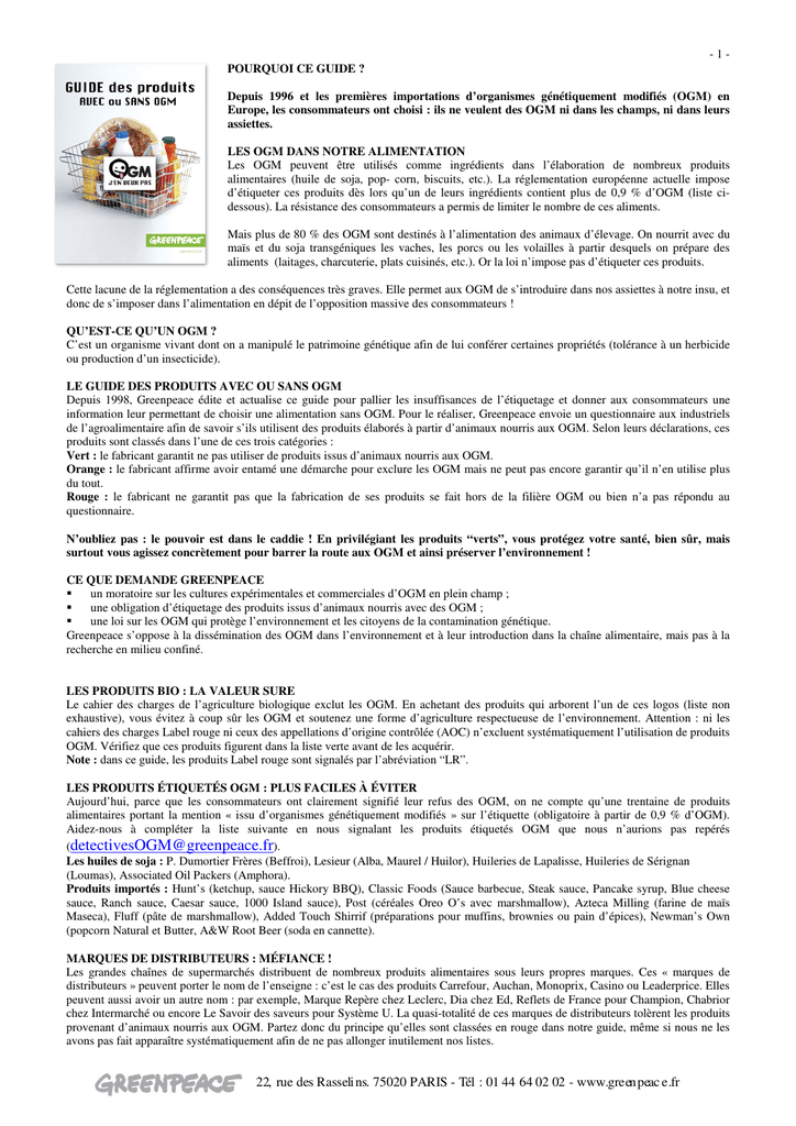 Guide des produits avec ou sans OGM