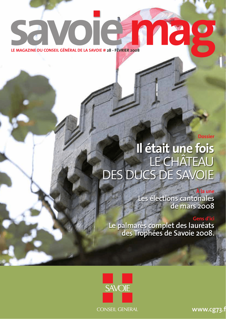 savoiemag LE MAGAZINE DU CONSEIL GÉNÉRAL DE LA SAVOIE # 28 - FÉVRIER 2008 Dossier Il était une fois LE CHÂTEAU DES DUCS DE SAVOIE À la une Les élections cantonales de mars 2008 Gens d’ici Le palmarès complet des lauréats des Trophées de Savoie 2008. www.cg73.f EN IMAGES Retour sur la « Grande Odyssée Savoie Mont-Blanc » ! 10 jours sous le signe du blanc ! Cette année,cette course de chiens de traîneaux, réputée comme la plus belle et la plus exigeante du monde, s’est courue dans d’excellentes conditions d’enneigement. Après une première étape sur le domaine des Portes du Soleil entre Haute-Savoie et Suisse, le parcours a rejoint la Haute-Maurienne Vanoise dès le 12 janvier. Un décor naturel éblouissant qu’ont traversé les meilleurs mushers internationaux.Succès assuré ! Plus de 50 000 spectateurs se sont pressés le long des différentes étapes de la course pour admirer et encourager les attelages. Après 1 000 km et 25 000 m de dénivelée, le grand vainqueur 2008 est le Suédois Petter Karlsson, devant le Suisse Emil Inauen et le Norvégien Ketil Reiten. Le premier français se classe 6e. À la 13e place, la première femme du classement, IsabelleTravadon,est française.Si vous avez manqué l’édition 2008, pas d’inquiétude, la course sera de retour en terre savoyarde en 2009 ! 02 LE MAGAZINE DU CONSEIL GÉNÉRAL DE LA SAVOIE SOMMAIRE 28 À LA UNE 04 • 9 et 16 mars, élisez votre Conseiller général ! ACTUALITÉS 06 • Toute l’information économique, sociale, sportive, touristique du département en bref. DOSSIER 10 • Il était une fois le château des Ducs de Savoie GENS D’ICI 15 • 11 lauréats qui font rayonner la Savoie TERRITOIRES 18 Après 36 heures et 3 minutes d’efforts, Petter Karlsson et son attelage franchissent la ligne d’arrivée en vainqueurs ! • Territoire de Chambéry • Territoire du Lac du Bourget et des ses montagnes • Revue de chantiers de l’hiver TEMPS LIBRE 20 ÉDITORIAL 2008, année du renouvellement de l'Assemblée départementale Premier numéro de l’année 2008, le magazine que vous venez de recevoir dans votre boîte aux lettres est aussi le dernier avant les échéances électorales du mois de mars prochain qui concernent notamment les Départements. Une partie des électeurs savoyards est appelée à participer au scrutin destiné à renouveler 18 des 37 Conseillers généraux qui constituent l’Assemblée départementale. Certains des actuels élus concernés par ces élections ont fait le choix de ne pas se représenter. Au soir du second tour, la composition de notre assemblée s’en trouvera forcément modifiée. Je pense notamment aux cantons d’Aiguebelle, de Ruffieux, de Saint-Pierre d’Albigny, des Échelles, de La Motte Servolex ou de Cognin qui auront un nouveau représentant. Les quatre années qui viennent de s’écouler, et durant lesquelles j’ai eu l’honneur de présider l’Assemblée départementale, ont constitué une mandature charnière, marquée par les importants transferts de compétences issus des dernières lois de décentralisation. L’esprit qui anime l’Assemblée départementale et le professionnalisme des quelque 2 400 agents qui constituent désormais les effectifs du Conseil général ont permis de franchir ce cap. À quelques jours des échéances électorales, l'activité départementale suit son cours habituel avec, les 7 et 8 février, la session plénière, consacrée à l'examen du budget pour 2008, voté comme l’année dernière sans augmentation des taux du Département appliqués aux impôts locaux. • L’agenda des idées de sorties : spectacles, manifestations sportives, événements culturels… PLACE PUBLIQUE 23 DIRECTEUR DE LA PUBLICATION Jean-Pierre Vial COORDINATION Anne-Sophie Megel RÉDACTION Anne-Sophie Megel, Yves De Langhe CRÉDITS PHOTOS PAGES INTÉRIEURES : La Grande Odyssée / Johan Dussert - La Grande Odyssée / Émilie Le Troadec La Grande Odyssée / Guillaume Vermeulen - La Grande Odyssée / Franck Desprez - Sylvie Friess - Espace Alu - Label Image - Jean-Marc Barrier / Act Image - Benoît Robert - Francis Helgorsky - Monique Nesbit / Béatrice Cafieri - Mick Allouis Régie Coup de Pouce - APEJS - Alain Dugas - Céline Nieszawer William Belle - Fabien Savouroux - Office de tourisme de Valmorel - Office de tourisme du Corbier - Office de tourisme d’Aix-les-Bains - Office de tourisme de Bessans Office de tourisme de Chambéry. EN BRAILLE AUSSI : Savoie Magazine est édité et diffusé gratuitement en braille et en cassette. Toute personne handicapée visuelle qui ne serait pas destinataire de cette parution peut en faire la demande à Savoie Magazine. CRÉATION : Esprit Public - RÉALISATION : Bienvenue sur Mars COMMISSION PARITAIRE en cours SITE INTERNET www.cg73.fr En attendant le prochain Savoie Mag au printemps, qui reviendra sur les résultats du scrutin cantonal, je vous invite à découvrir ce numéro dont le dossier est consacré au Château des Ducs de Savoie. Bonne lecture, Le Président du Conseil général de la Savoie ISSN 0991-3734 — DÉPÔT LÉGAL 1er trimestre 2008 IMPRESSION Groupe OPALE — ISTRA DIFFUSION La Poste Square Paul Vidal, Chambéry TIRAGE 185 000 exemplaires 03 SAVOIE MAGAZINE FÉVRIER 2007 À LA UNE 9 ET 16 MARS : élisez votre Conseiller général ! Dans moins de 3 semaines, quelque 290 000 électeurs Savoyards sont appelés à voter pour élire leur Maire. Dans 18 des 37 cantons qui composent la Savoie, ils doivent aussi, pour les six prochaines années, désigner leur Conseiller général. Initialement prévu en mars 2007, soit 6 ans après le renouvellement de 2001, ce scrutin a été repoussé d’une année en raison d’un calendrier électoral déjà très chargé. Depuis les dernières élections cantonales en 2004, le Département a pris en charge de nouvelles compétences transférées à l’occasion des récentes lois de décentralisation et touche ainsi plus encore à tous 