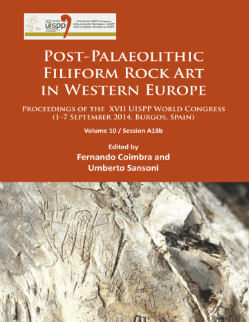 Post-Palaeolithic Filiform Rock Art in Western Europe Proceedings of the XVII UISPP World Congress (1–7 September 2014, Burgos, Spain) Volume 10 / Session A18b Edited by Fernando Coimbra and Umberto Sansoni Post-Palaeolithic Filiform Rock Art in Western Europe Proceedings of the XVII UISPP World Congress (1–7 September 2014, Burgos, Spain) Volume 10 / Session A18b Edited by Fernando Coimbra and Umberto Sansoni Archaeopress Archaeology Archaeopress Publishing Ltd Gordon House 276 Banbury Road Oxford OX2 7ED www.archaeopress.com ISBN 978 1 78491 367 0 ISBN 978 1 78491 368 7 (e-Pdf) © Archaeopress, UISPP and authors 2016 VOLUME EDITORS: Fernando Coimbra and Umberto Sansoni SERIES EDITOR: The board of UISPP SERIES PROPERTY: UISPP – International Union of Prehistoric and Protohistoric Sciences The editing of this volume was funded by the Instituto Terra e Memória, Centro de Geociências UID/Multi/00073/2013, with the support of the Fundação para a Ciência e Tecnologia FCT/MEC KEY-WORDS IN THIS VOLUME: filiform, cultural contacts, incised rock art, autonomy UISPP PROCEEDINGS SERIES is a printed on demand and an open access publication, edited by UISPP through Archaeopress BOARD OF UISPP: Jean Bourgeois (President), Luiz Oosterbeek (Secretary-General), François Djindjian (Treasurer), Ya-Mei Hou (Vice President), Marta Arzarello (Deputy Secretary-General). The Executive Committee of UISPP also includes the Presidents of all the international scientific commissions (www.uispp.org) BOARD OF THE XVII WORLD CONGRESS OF UISPP: Eudald Carbonell (Secretary-General), Robert Sala I Ramos, Jose Maria Rodriguez Ponga (Deputy Secretary-Generals) All rights reserved. No part of this book may be reproduced, or transmitted, in any form or by any means, electronic, mechanical, photocopying or otherwise, without the prior written permission of the copyright owners. This book is available direct from Archaeopress or from our website www.archaeopress.com Contents List of Figures and Tables..................................................................................................................... ii Foreword to the XVII UISPP Congress Proceedings Series Edition..................................................... iv Luiz Oosterbeek Post-Palaeolithic filiform rock art in Western Europe Introduction.................................................... v Fernando A. Coimbra and Umberto Sansoni Late Prehistoric incised rock art in southern Europe: a contribution for its typology......................1 Fernando A. Coimbra Gravures linéaires et schématiques-linéaires de la région du mont Bego (Tende, Alpes Maritimes, France).....................................................................................................13 Nicoletta Bianchi Filiform figures in the rock art of Valcamonica from Prehistory to Roman age..............................29 Umberto Sansoni, Cinzia Bettineschi, Silvana Gavaldo Threadlike engravings of historical period on the rocks and plaster of churches and civic buildings. Some comparisons and proposals of interpretation.......................................43 Federico Troletti The rock art from Figueiredo (Sertã, Portugal): typology, parallels and chronology......................55 Fernando A. Coimbra and Sara Garcês The filiform rock art from Kosovo....................................................................................................67 Shemsi Krasniqi The filiform rock engravings of the Parete Manzi of Montelapiano (Chieti, Italy).........................77 Tomaso Di Fraia i List of Figures and Tables F. A. Coimbra: Late Prehistoric incised rock art in southern Europe: a contribution for its typology Figure 1. Different types of anthropomorphic figures..................................................................................7 Figure 2. Footprints, tree like figures, deer and weapons.............................................................................8 Table 1. Typology of the Geometric Group.......................................................................................................3 N. Bianchi: Gravures linéaires et schématiques-linéaires de la région du mont Bego (Tende, Alpes Maritimes, France) Figure 1. ZIV.GIII.R31B2: hallebardes incisées et complétées par raclage....................................................16 Figure 2. Poignards raclés sur la roche ZXIV.GI.R1β du secteur de Valmasque..........................................16 Figure 3. ZIV.GIII.R17D: personnage réalisé à moitié par piquetage et à moitié par incision.......................17 Figure 4. Roche dite ‘des Hallebardiers’ (ZXIX.GIV.R13α)...............................................................................18 Figure 5. Corniforme linéaire à corps réticulé et cornes en zigzag sur la roche ZIV.GII.R23A.................19 Figure 6. Attelages incisés sur la roche ZIV.GII.R1C.......................................................................................20 Figure 7. Roche dite ‘de l’Autel’ (ZXI.G0.R1)....................................................................................................22 Figure 8. ZIV.GII.R12A: composition piquetée complétée par des motifs schématiques-linéaires...............24 Figure 9. Poignard linéaire et anthropomorphe avec épée frangée sur la roche ZVIII.GX.R8...................25 Figure 10. Représentation probable de Kernunnos.......................................................................................25 Figure 11. Inscription latine sur la roche ZVIII.GX.R32.................................................................................26 U. Sansoni, C. Bettineschi, S. Gavaldo: Filiform figures in the rock art of Valcamonica from Prehistory to Roman age Figure 1a. Map of the rock art areas in the middle Valcamonica................................................................30 Figure 1b. Map of the rock art areas in the middle Valcamonica............