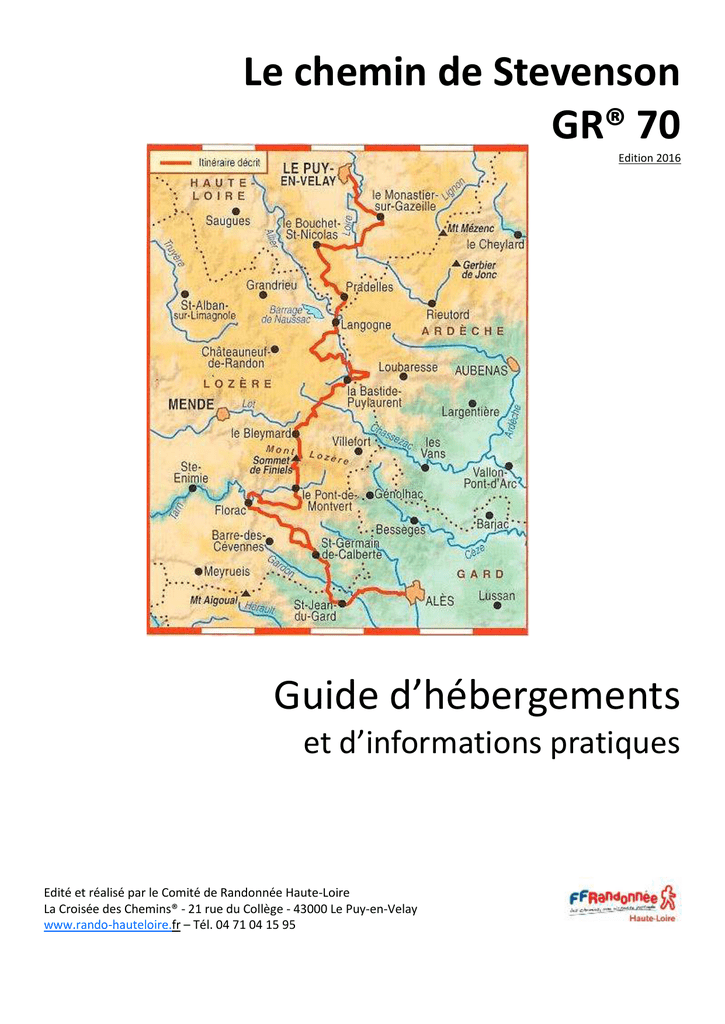 Guide des hébergements du GR70 Chemin de Stevenson 2016