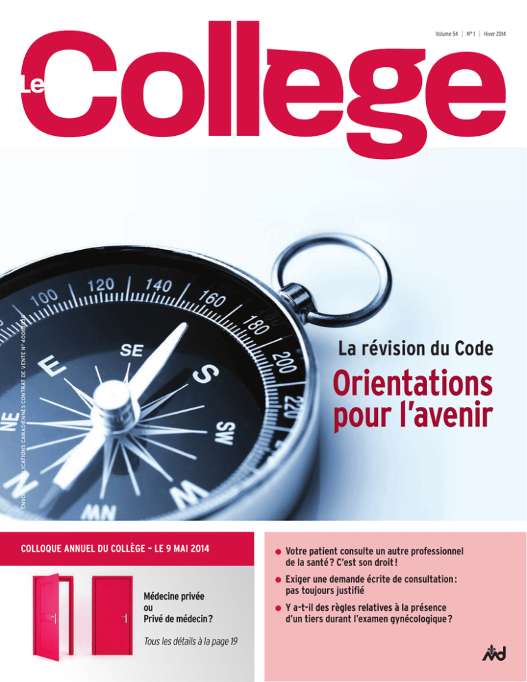 Revue Le Collège, hiver 2014 - Collège des médecins du Québec