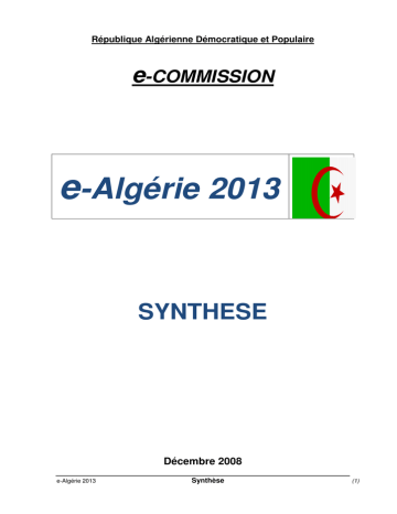 République Algérienne Démocratique et Populaire e-COMMISSION e-Algérie 2013 SYNTHESE Décembre 2008 e-Algérie 2013 Synthèse (1) Sommaire Sommaire ......................................................................................................................... 2 Introduction générale ........................................................................................................ 3 A. Accélération de l’usage des TIC dans l’administration ............................................... 13 B. Accélération de l’usage des TIC dans les entreprises................................................. 18 C. Développement des mécanismes et des mesures incitatives permettant l’accès des citoyens aux équipements et aux réseaux des TIC ......................................................... 20 D. Impulsion du développement de l’économie numérique ............................................. 22 E. Renforcement de l’infrastructure des télécommunications à haut et très haut débit .... 25 F. Développement des compétences humaines.............................................................. 28 G. Renforcement de la recherche-développement et de l’innovation ............................. 29 H. Mise à niveau du cadre juridique national................................................................... 31 I. Information et communication ...................................................................................... 32 J. Valorisation de la coopération internationale ............................................................... 33 K. Mécanismes d’évaluation et de suivi .......................................................................... 34 L. Mesures organisationnelles ........................................................................................ 35 M. Moyens financiers et planification .............................................................................. 36 Echéancier de mise œuvre ............................................................................................. 38 e-Algérie 2013 Synthèse (2) Introduction générale De nos jours, tout processus de développement économique et social réserve une place de plus en plus importante aux technologies de l’information et de la communication et au savoir. En effet, ces deux éléments constituent des facteurs décisifs de transformation rapide des modèles économiques et sociaux en raison de leurs effets transversaux sur tous les secteurs de l’industrie et des services, de leur capacité à accélérer la circulation de l’information et de la forte valeur ajoutée induite par ce nouvel actif immatériel qu’est le savoir. Les nations les plus puissantes du monde ont vu leur croissance dopée par la priorité accordée à ces deux facteurs, source principale de création de richesse et de gain de compétitivité. En effet, la bataille du numérique et la valorisation du capital humain sont à la base des enjeux du développement économique et social et de la préparation des pays aux défis de la globalisation. La modernisation des économies est ainsi inconcevable sans une domestication rapide du numérique par l’ensemble des acteurs économiques et sociaux (administrations, entreprises, citoyens) et sans une approche efficace et performante de développement du capital intellectuel, dont le vecteur clé est l’investissement en recherche – développement et innovation et en éducation – formation. Impacts de l’édification de la société de l’information et de l’économie numérique sur le développement économique et social des nations : Impact sur le développement économique. La société de l’information est une société en réseau grâce à la convergence des télécommunications et de l’informatique. La souplesse de cette forme d’organisation est un atout dans une économie ouverte et mondialisée de surcroît. L’infrastructure de l’information et de la communication étant un fondement essentiel de la société de l’information, les Etats ont mis en place, d’une part, des politiques nationales de développement des infrastructures TIC, en mettant l’accent sur les accès à haut débit et, d’autre part, des services adaptés aux exigences de la nouvelle économie.. D’après une enquête de l’OCDE (Organisation de Coopération et de Développement Economique), réalisée en juin 2008 au sein des pays membres, le taux de pénétration du haut débit a atteint 21,3%, en augmentation de 20% par rapport à l’année 2007. La Corée du Sud, le Danemark, les Pays Bas, la Norvège, la Suisse, l’Islande, la Suède et la Finlande viennent en tête avec une moyenne dépassant 30%. En termes de volume, les Etats-Unis comptent plus de 75 millions d’accès à haut débit. L’ère de l’information s’appuie sur le développement de systèmes décentralisés, coordonnés par le transfert d’informations à travers un réseau planétaire. Les entreprises économiques travaillent en réseau et optent de plus en plus pour l’externalisation d’une partie de leurs activités auprès de sous-traitants. De nouveaux métiers et services sont ainsi créés autour de ces activités. Avec l’introduction des technologies de l’information et de la communication (TIC), les gains de productivité s’accélèrent et deviennent visibles après une période de latence nécessaire à l’appropriation et l’intériorisation de ces outils virtuels. Convaincus de l’efficacité des TIC dans l’amélioration des performances des entreprises, les capitaines de l’industrie ont réalisé des investissements importants dans l’informatique, les télécommunications et les logiciels. e-Algérie 2013 Synthèse (3) Ainsi, selon une étude de l’OCDE réalisée entre 2000 et 2002, la contribution des TIC à la croissance économique est passée de la fourchette 0,1 à 0,3 point de 1980 à 1997, à la fourchette 0,3 (Fra
