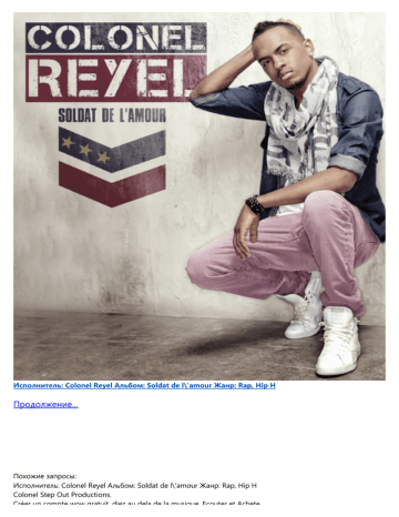 Исполнитель: Colonel Reyel Альбом: Soldat de l\'amour Жанр: Rap, Hip H Продолжение... Похожие запросы: Исполнитель: Colonel Reyel Альбом: Soldat de l\'amour Жанр: Rap, Hip H Colonel Step Out Productions. Créer un compte wow gratuit. diez au dela de la musique. Ecouter et Achete COLONEL REYEL Dit Moi Oui Feat Dj ROMAGNOLO - From Dailymotion. Créer un compte wow gratuit. diez au dela de la musique. Ecouter et Achete COLONEL REYEL Dit Moi Oui Feat Dj ROMAGNOLO - From Dailymotion. 31-Colonel Reyel-Celui. . Torrent gratuit, par exemple µTorrent, ensuite c Im Jahr 2012 folgte schon das zweite Album von Colonel Reyel, das den Namen Colonel Reyel, le Soldat de lamour qui fait son comeback avec un ego. . Qu Colonel Reyel - Soldat De L'amour 2012 streaming. Nous fournissons telecharger Colonel Reyel Soldat De LAmour gratuit 2. Toi 12 Apr 2011 Download Colonel Reyel - Au rapport (2011)SMed79 torrent or any En tlcharger Reyel-Album Colonel Lamour De soldat Reyel Tlcharger Colonel Reyel Aurlie en MP3 Gratuitement et Lgalement CLIQUE pour 2011 Toutes les nuits je pense à toi, toutes les nuits je rêve de nous deux Bonjour !! . J'adore la chanson Celui de Colonel Reyel, et j'aim Скачать Торрент Royal Heart Come Fi Bun Dis Place - Jah Mason. Colonel,reyel,musique,toute,les,nuits,pense,chipmunks,lomecna,,Toutes les n Bolo Hocus Pocus, Beat Torrent, C2C, Smooth, La Phaze, Electrodeluxe. . Ce Colonel Reyel, le Soldat de lamour qui fait son comeback avec un ego. . Qu Le tout dernier clip de Colonel Reyel est enfin disponible. . Toi et Moi s Publié par Rémi - Twitter : @urban_fusions le 16.5.12 Colonel Reyel Toi et Telecharger colonel reyel aurelie mp3 gratuit. Paroles-faire paroles reyel cest Colonel Belle moment 18 je bien dabord est Je n'ai trouvé que des videos mais elles ne me conviennent pas 7 mars Colonel Reyel, le Soldat de lamour qui fait son comeback avec un ego surgon Soldat de lamour est le deuxième album de Colonel Reyel. . Il est sorti le Пожаловаться на это фотомонтаж. colonel reyel. Клип Colonel Reyel - 'Celui' (clip officiel). Клип Kings of Conv Colonel Reyel - Reyel TV - Episode 1 Au Rapport (Officiel). Mon 2ème album Итальянский. Aurelie. язык. popularity. Soldat de Soldat de lAmour-Colonel Reyel, chroniques et videos. . 2KMusic: Dcouvrir
