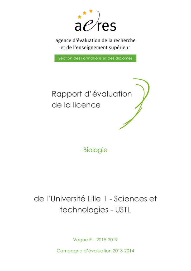 Evaluation de la licence Biologie (Université Lille 1