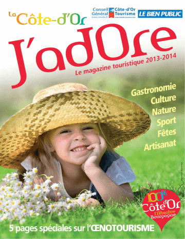 Côte-d’Or Tourisme www.cotedor-tourisme.com Edito Bienvenue en Côte-d'Or ! souffle sa première bougie autour d’un programme varié d’animations pour toute la famille. Pour profiter à chaque instant et au gré de vos humeurs de toute l’activité du département, laissez-vous porter par des suggestions musicales, nature, sportives et culturelles des dernières pages et offrez-vous un séjour à la mesure de vos envies. Ici, les paysages vagabondent entre vignobles renommés, nature à l’état pur, sources et rivières. L’art de vivre se conjugue au présent, autour d’une bonne table, un verre à la main ou simplement en levant les yeux sur la pierre des cités. Terre de multiples contrastes, notre département se distingue par des paysages, des couleurs et des saveurs que vous découvrirez au fil de ce magazine spécialement conçu Nous vous souhaitons une bonne lecture et un excellent pour vous par Côte-d’Or Tourisme et le journal le Bien séjour. Public. Les sept territoires s’y dévoilent au gré de rubriques Christophe MAHIEU, qui recèlent à elles toutes une mine de bonnes idées. Président Directeur Général du Bien Public Terre d’histoire, riche d’un patrimoine ancestral, la Côted‘Or vit aussi au rythme de nombreuses manifestations, François SAUVADET vous promettant d’agréables moments dans un terPrésident du Conseil Général ritoire attachant et parfois bien surprenant. de la Côte-d'Or Partenaire incontournable de vos balades, « La Côte-d’Or J’adore » vous servira AUBE Troyes Jean-Pierre REBOURGEON, de guide pour cette saison touristique Chaumont Président de Côte-d'Or Tourisme 2013-2014 encore riche en événeMontigny-surments. Aube D 98 0 Châtillon-surTrésor Vous y retrouverez les grands Seine de Vix Forêt Domaniale moments ou les nouveautés Auxerre de Châtillon Laignes qui feront l’actualité cette an- Tonnerre Langres Receynée, le savoureux cahier sur-Ource HAUTEMARNE « oenotourisme et gastroTroyes Pays Nancy nomie », à l’image d’une Auxerre GranceyChâtillonnais le-ChâteauLangres tradition viticole de Buffon Neuvelle La Grande Forge Aignaygrande renommée et le-Duc Abbaye de Fontenay des pages spéciales YONNE Selongey BaigneuxMontbard les-juifs dédiées au MuséoBussyFontainePays Is-surVenareyRabutin Parc Alésia, le site de Française Semurles Laumes Tille Paris Alésia en-Auxois la célèbre bataille qui, un Seine et Sources de la Seine an après son ouverture, Flavigny4 La Se in e RD 97 1 5 RD 90 97 D sur-Ozerain na l Bo ur go L' O u e Sombernon 1 Auxonne Allemagne ou rg og saint-Jeande-Losne 31 ne Nuits-Saint-Georges de Nuits A 4 97 Beaune, côte et hautes côtes de Beaune 5 B et hautes côtes 6 90 Pontalliersur-Saône de 98 Genlis 39 l Abbaye de Cîteaux La Sa ôn e A Beaune Seurre Mulhouse Genève 36 JURA Dole Besançon Nolay véloroutes/voies vertes aménagées en projet Lyon SAÔNEETLOIRE © Igor Yaruta - Fotolia.com Autun 6 RD na RD 90 A Côte Gevrey-Chambertin A Gray Besançon Dijon et sa région Clos Vougeot Blignysur-Ouche Arnay-le-Duc NIÈVRE 38 Chenôve Ca Morvan A Pouillyen-Auxois RD Liernais che RD 6 Saulieu V de allée l'O uch e A gn D 9 80 de MORVAN HAUTE SAÔNE Vingeanne Val Mirebeausur-Bèze de Saône Fontainelès-Dijon Pays de l'Auxois Ca PARC NATUREL RÉGIONAL DU Saint-Seinel'Abbaye Vitteaux Précysous-Thil A 31 Sens Avallon Tilles Côte-d’Or Tourisme www.cotedor-tourisme.com 3 Sommaire Visites - Dijon, la côte et les hautes côtes de Nuits - Beaune, la côte et les hautes-côtes de Beaune - Auxois et Morvan - le Pays Châtillonnais - Seine et Tilles - Vallée de l’Ouche - Vingeanne et Val de Saône page page page page page page page 13 23 31 43 45 47 51 Art et culture - musique et festivals - salles de spectacles - spectacles - cirque, danse et music-hall - théâtre, contes, littérature et poésie - son et lumière - cinéma - les expositions page page page page page page page page page 55 56 66 68 69 69 70 71 72 Artisanat - artisans - rendez-vous de l’artisanat - fêtes traditionnelles et populaires, - antiquités, brocantes, vide-greniers et collections - foires aux livres page page page page page page 81 81 83 83 85 86 Oenotourisme, gastronomie voir sommaire de la rubrique page 87 page 87 Nature - animations et randonnées - visites, parcs, jardins et sites naturels - activités randonnée pédestre - baignades - balades à vélo - pêche - balades à cheval ou avec des ânes page page page page page page page page La Côte-d’Or pour les enfants page 143 Activités sportives, de loisirs et de bien-être - grands rendez-vous sportifs - sports nautiques - roller, skate - sports mécaniques - golf - aventure - en l’air - paintball, laser-game/airsoft - tir à l’arc - bowling, quillier - spas, hammams, saunas page page page page page page page page page page page page Villes et Villages fleuris Cité dans Vignobles et des guides Découvertes gastronomiques La Côte-d'Or j'adore Numéro hors série réalisé par Côte-d'Or Tourisme & Le Bien Public. Ne peut être vendu séparément. Directeurs de la publication : - Christophe MAHIEU, Président Directeur Général du Bien Public, SA au capital de 450.000 E - RCS DIJON 57B81 7, boulevard Chanoine Kir BP 550 - 21015 Dijon Cedex France - Tél. 03 80 42 42 42 Fax 03 80 42 42 10 site internet : www.lebienpublic.fr Tourisme et Handicap 147 148 151 151 152 152 152 153 154 154 154 154 Activités de nature, p. 129 Activités sportives, p. 147 Pour tout savoir sur le temps en Côte-d’Or : composez le 08 99 71 02 21 - Jean-Pierre REBOURGEON, Président de Côte-d'Or Tourisme - BP 1601 21035 Dijon Cedex - France Tél. 03 80 63 69 49 Fax 03 80 49 90 97 site internet : www.cotedor-tourisme.com mél : [email protected] Rédacteurs en chef : - Michel MEKKI pour Le Bien Public - Pascale LAMBERT pour Côte-d'Or Tourisme Publicité : Service Publicité du Bien Public Tirage : 115.000 exemplaires Impression : GRLI-INTERPRINT (57) Date de parut