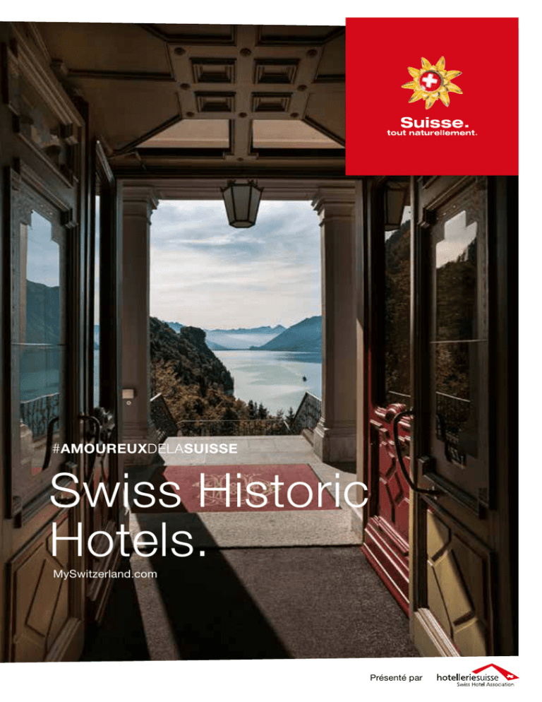 #AMOUREUXDELASUISSE Swiss Historic Hotels. MySwitzerland.com Présenté par Les Swiss Historic Hotels en un coup d’œil. La Suisse: petite par la taille, immense par la diversité. Cette carte vous indique où se trouvent les Swiss Historic Hotels. A Aargau B Bâle Région C Berne-Oberland bernois D Fribourg Région D 1 B F A H 31 E Genève F Canton de Vaud, Région du Léman G Grisons H Jura & Trois-Lacs I Lucerne-Lac des Quatre-Cantons J Suisse Orientale / Liechtenstein 33 3 32 C 9 D 8 F K Tessin L Valais 5 10 M 7 12 Région de Zurich 44 11 E 45 L 42 46 6 49 47 38 50 M 48 A FL I J 35 36 37 17 20 15 34 24 16 18 19 2 G 30 13 Splügen 4 14 28 29 22 26 25 K 27 43 41 39 40 I 23 21 Trouvez le Swiss Historic Hotel idéal dans la région de votre choix: Bâle Région 06–07 Berne-Oberland bernois 08–13 Fribourg Région 14–15 Le charme d’un autre temps: les Swiss Historic Hotels 04–05 Canton de Vaud, Région du Léman 16–19 Grisons 20–31 Jura & Trois-Lacs 32–35 Lucerne-Lac des Quatre-Cantons 36–39 Suisse Orientale / Liechtenstein 40–41 Tessin 46–49 Valais 50–53 Région de Zurich 54–57 Le passé vous rattrape: invitation à la rêverie 26–27 Grüezi et bienvenue à tous. Envie de remonter le temps, de plonger dans le charme de la Belle Epoque ou la splendeur d’un ancien palazzo? De la plus simple auberge de montagne jusqu’au plus luxueux palace, les Swiss Historic Hotels sont des bâtiments chargés d’histoire. À eux tous, ces 50 établissements totalisent au moins 12 000 ans d’hospitalité. Plusieurs sont dans la même famille depuis plusieurs décennies et certains, depuis plus de cinq générations. Leurs gérants sont souvent en prise directe avec la culture locale, signe de l’importance de l’hôtellerie dans l’histoire du tourisme suisse. Cette brochure vous présente quelques-uns des plus beaux hôtels historiques de chaque région, recommandés par Suisse Tourisme et hotelleriesuisse. Nous vous souhaitons bonne lecture et espérons vous voir très prochainement… tomber amoureux de la Suisse! Jürg Schmid Directeur Suisse Tourisme Dr. Christoph Juen CEO hotelleriesuisse L’hôtel qu’il vous faut en un clic Chercher un hôtel devient un jeu avec l’appli «Best Swiss Hotels», qui vous permet de réserver en ligne tous les hôtels recommandés dans cette brochure. Téléchargez-la sur notre site: MySwitzerland.com/best-swiss-hotels. Bon voyage et bonne découverte! Präsentiert von #AMOUREUXDELASUISSE 3 voir En slaus p Classification des hôtels� Ò� simple Ó confortable confortable supérieur Ô intermédiaire Voyages dans le temps. Si les Swiss Historic Hotels nous fascinent, c’est pour leur charme souvent mûri pendant des siècles. Mais au-delà de leur histoire, ces établissements bénéficient aussi de l’engagement des hôteliers, dont le sens de l’accueil et du service fait de chaque séjour une expérience unique et mémorable. à intermédiaire supérieur Õ première classe À première classe supérieure Ö luxueux Ä luxueux supérieur Swiss Lodge Pictogrammes En ville Au bord de l’eau À la montagne Eloge de la nostalgie. À la campagne Les Swiss Historic Hotels ressuscitent l’esprit des temps anciens Wi-fi gratuit Prix ICOMOS Deux systèmes de classification cohabitent en Suisse. Pour en savoir plus, veuillez consulter les sites www.hotelleriesuisse.ch et www.gastrosuisse.ch. De la simple chambre d’hôtes au plus luxueux palace, les Swiss Historic Hotels se déclinent dans toutes les tailles et toutes les catégories. Au-delà de ces différences, ils ont tous en commun une histoire riche, parfois mouvementée, savamment cultivée et qui leur confère un charme inimitable. Leur authenticité est préservée avec soin, y compris en cas de travaux de rénovation. Car le but n’est pas seulement de bien recevoir les hôtes, mais aussi de leur offrir une immersion culturelle intemporelle. MySwitzerland.com/historique 4 Testés et recommandés. Les Swiss Historic Hotels remplissent tous les critères suivants: ❦ Bâtiment principal de plus de 50 ans Hôtels récompensés. «Hôtel historique de l’année»: un titre convoité Le Conseil international des monuments et des sites (ICOMOS), qui a son siège à Paris, a été fondé en 1965 sous l’égide de l’UNESCO. Le jury de sa section suisse décerne chaque année le Prix de l’hôtel historique. Les hôtels primés de cette brochure sont signalés par un pictogramme. icomos.ch Patrimoine européen. Atmosphère historique et traditions locales ❦ Tradition hôtelière établie de longue date ❦ Atmosphère historique et architecture notable ❦ Décoration, éclairage et mobilier d’inspiration historique ❦ L’organisation «Historic Hotels of Europe» rassemble une sélection exclusive de plus de 500 hôtels historiques, souvent de petites dimensions, à travers 20 pays européens. On y trouve des châteaux, manoirs, villas, fermes et anciens monastères. Chaque propriété est unique par son style et offre à ses visiteurs la possibilité de s’immerger dans un cadre historique et de savourer une hospitalité traditionnelle et authentique. historichotelsofeurope.com Travaux réalisés dans le respect de l’existant MySwitzerland.com/ historique #AMOUREUXDELASUISSE 5 Bâle Région. Cité d’art et de culture en quatre lettres… Bâle, bien sûr! La ville bâtie au bord du Rhin possède la plus forte densité de musées du pays (40), un vieux centre chargé d’histoire et un patrimoine architectural hors du commun. Période de traditions vivantes, voire débridées, en huit lettres? Carnaval. Pont du Milieu et église Saint-Martin à Bâle 1 Basel: Hotel Krafft à GaultMillau: 12 points Cet hôtel urbain de tradition, situé au bord du Rhin, célèbre depuis 150 ans une hospitalité qui a le sens du détail. Sa décoration mêle les styles classi que et contemporain avec inspiration et sa cuisine se distingue par sa fraîcheur et sa créativité.