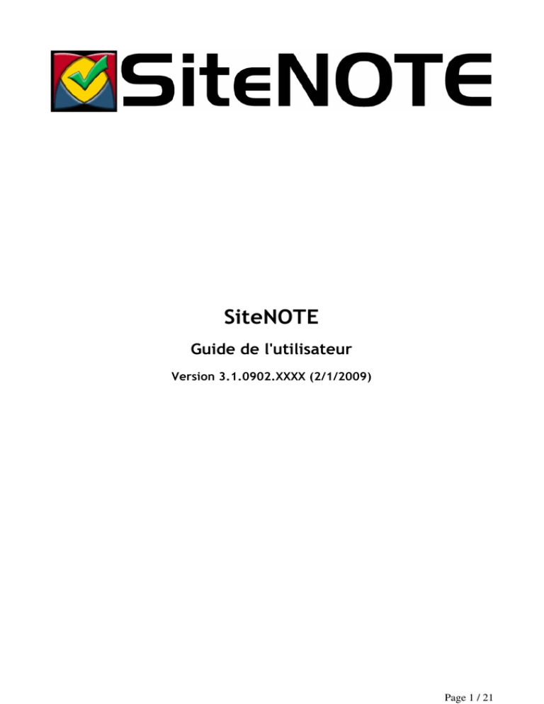 SiteNOTE Guide de l'utilisateur Version 3.1.0902.XXXX (2/1/2009) Page 1 / 21 Table des matières 1 Introduction 1.1 Utilisateurs concernés par SiteNOTE 1.2 Site d’exemple utilisé dans ce document 1.3 Types d’utilisateurs 1.4 Gestion du contenu 1.5 Conventions de notation 2 Installation 2.1 Configuration système 2.1.1 Serveur 2.1.1.1 Configuration minimale 2.1.1.2 Configuration recommandée 2.2 Client administrateur 2.2.1 Configuration minimale 2.2.2 Configuration pour Microsoft Internet Explorer 7 2.3 Client visiteur 3 Concepts de base 3.1 Structure du site 3.1.1 Hiérarchie 3.1.2 Modules 3.1.3 Sites multilingues 3.2 Accéder à l’administration 3.2.1 Adresse 3.2.2 Nom d’utilisateur et mot de passe 3.3 Barres d’outils d’administration 3.4 Gestion du contenu 4 Gestion des droits d'accès 4.1 Utilisateurs 4.2 Groupes 4.3 Rôles et permissions 5 Gestion de la structure du site 5.1 Créer une nouvelle page 5.2 Modifier l’ordre des pages 5.3 Modifier les propriétés 5.4 Afficher les pages cachées et hors ligne 5.5 Modifier les permissions 5.6 Publier 5.7 Lister toutes les pages du site Page 2 / 21 5.8 Historique d'une page 6 Gestion du contenu 6.1 Contenu libre (HTML) 6.2 Contenu structuré (XML) 6.2.1 Structure hiérarchique 6.2.2 Ajouter un objet 6.2.3 Modifier du texte 6.2.4 Modifier les propriétés 6.2.5 Objets particuliers 6.2.5.1 Picture 6.2.5.2 File 6.2.5.3 Slide show 6.2.5.4 List 6.2.5.5 Bloc 6.2.5.6 Tabbed sections 6.2.5.7 Popup page 6.2.5.8 Objets sur mesure 7 Modules complémentaires 7.1 Plan du site 7.2 Moteur de recherche 7.3 Formulaires 7.3.1 Création 7.3.2 Modification 7.3.3 Etapes multiples 8 Monitoring Page 3 / 21 1 Introduction Bienvenue dans la documentation de SiteNOTE, une solution simple et puissante de gestion de contenu pour sites Web. SiteNOTE vous permet de gérer, mettre à jour ou créer le contenu de votre site, tout en préservant un aspect et un design cohérent dans toutes les pages. Les tâches de maintenance et de mise à jour sont ainsi confiées aux experts en contenu, qui contrôlent directement la qualité et le cycle de vie du site. SiteNOTE permet aussi aux développeurs d’ajouter des nouveaux modèles, design ou structures de page. Ils peuvent intégrer sans difficulté des applications sur mesure, en disposant des outils de navigation et d’authentification de SiteNOTE. Un des modules complémentaires de SiteNOTE permet d’automatiser la gestion de formulaires. Les éditeurs peuvent créer des formulaires Web tels que des notes de frais, des demandes de formation ou des commandes. Ils peuvent ensuite enrichir, envoyer et collecter les données, ou encore imposer un cycle d’approbation, le tout à travers un workflow défini au sein du Navigateur Web. Les autres modules complémentaires permettent de gérer ou de créer des newsletters, des listes de news, des galeries d'images, des zones à accès réservé et d'interroger le moteur de recherche. 1.1 Utilisateurs concernés par SiteNOTE SiteNOTE intéresse les catégories de personnes suivantes : L’ingénieur système, qui installe et configure SiteNOTE sur les infrastructures de test et de production. L’administrateur, qui défini les paramètres globaux du site, les modèles, les utilisateurs et les permissions de base. L’éditeur, qui introduit ou modifie le contenu du site (rédacteur), modifie le layout des pages (designer) ou publie les pages en ligne (approbateur). Le développeur, qui réalise les modèles et structures de page, ou programme des contrôles ou des applications. Ce document introduit les concepts, caractéristiques et instructions permettant l’utilisation de SiteNOTE en tant qu’administrateur et éditeur. 1.2 Site d’exemple utilisé dans ce document Cette documentation utilise le site d’exemple « Totem » pour démontrer et expliquer les fonctionnalités d’un site contrôlé avec SiteNOTE. Celui-ci est installé par défaut lors de l’installation standard de SiteNOTE. Attention, en fonction de la configuration réalisée pour votre environnement, le site « Totem » peut être significativement différent de votre site, non seulement pour le design, mais également en ce qui concerne les fonctionnalités d’édition, les modules diponibles et la structure des pages. En cas de doute sur la disponibilité de ces fonctionnalités, adressez-vous à l’administrateur du site. 1.3 Types d’utilisateurs Les tâches de création et de gestion du contenu du site sont réparties sur différents types d’utilisateurs. Les rôles suivants sont généralement définis : Créateur, qui initie la création de pages. Rédacteur, qui modifie le contenu. Approbateur, qui publie les pages. Gestionnaire de sécurité, qui gère les utilisateurs et les permissions. 1.4 Gestion du contenu SiteNOTE modifie un site Web en utilisant des techniques avancées d’édition de fichiers. En particulier, SiteNOTE n’utilise pas de base de données, et les fichiers publiés sur le site sont directement transmis à l’utilisateur par le serveur Web, mettant dès lors à profit tous les mécanismes d’optimisation des performances disponibles dans ASP.NET. SiteNOTE gère deux versions du site : La version en ligne, visible par les visiteurs. La version de travail, visible par les éditeurs. Note : d'autres versions du contenu sont conservées par SiteNOTE: les pages sont sauvegardées lors de chaque publication. Ces versions servent à implémenter la fonctionnalité d'archivage. Page 4 / 21 Les éditeurs apportent les modifications à la version de travail, soumettent les pages pour publication, puis les approbateurs les publient en une fois vers la version en ligne. Les contenus eux-mêmes sont créés ou modifiés par les rédacteurs dans des modèles de documents, ce qui permet de préserver une cohérence graphique dans toutes les pages du site. 1.5 Conventions de notation Cette documentation utilise les conventions suivantes : Gras : indique le nom d’u