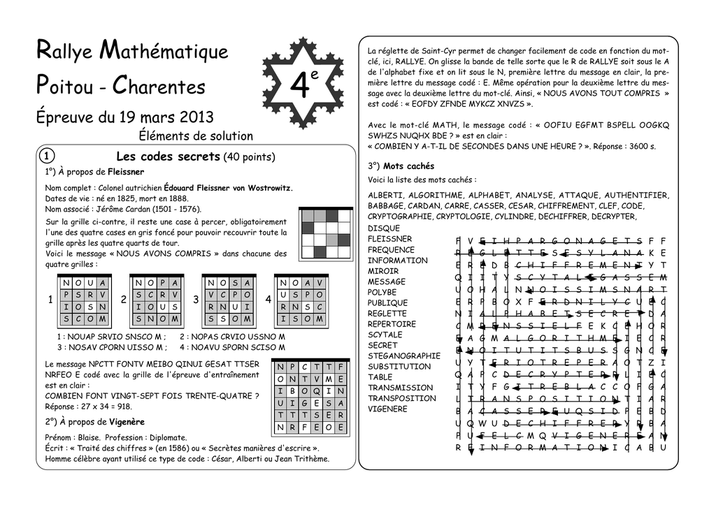 4e Rallye Mathématique Poitou - Charentes Épreuve du 19 mars 2013