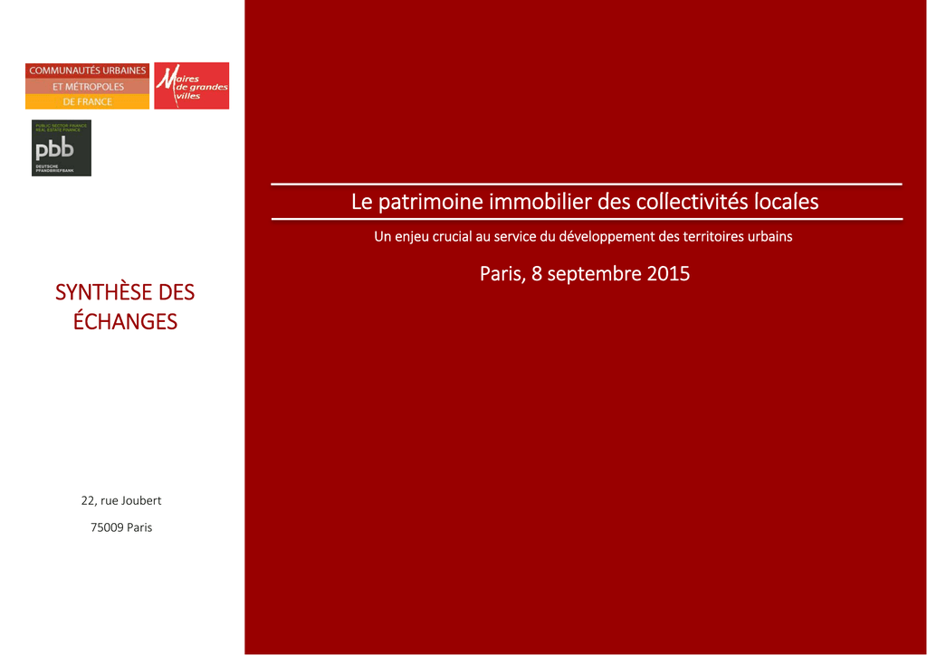 Le patrimoine immobilier des collectivités locales SYNTHÈSE DES