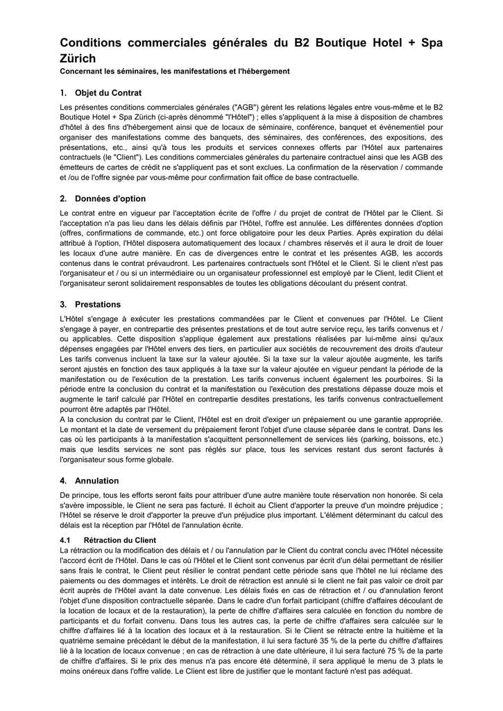 Conditions commerciales générales du B2 Boutique Hotel + Spa