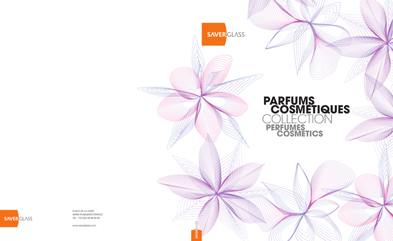 PARFUMS COSMETIQUES COLLECTION PERFUMES COSMETICS PLACE DE LA GARE 60960 FEUQUIERES FRANCE Tél. : +33 (0)3 44 46 45 45 www.saverglass.com CRÉATEUR D’ÉLÉGANCE Différenciation & Sophistication Saverglass s’est démarqué depuis plusieurs décennies en proposant des designs modernes, intemporels, osés, originaux, souvent en rupture, où la pureté, la qualité et la maîtrise de la fabrication ont contribué à la construction du style et de la réputation de Saverglass. Une collection très large dédiée à la Parfumerie et à la Cosmétique Saverglass complète sa palette, déjà large de formes, en lançant chaque année 2 nouveaux modèles* en moyenne, où la lumière, la transparence, la brillance et l’éclat du verre Extra-blanc de Saverglass s’expriment pleinement. La décoration : Oser éblouir Se démarquer des autres, frapper les esprits, décupler l’impact visuel, proposer des solutions de parachèvement innovantes qui viendront compléter les efforts de différenciation déjà engagés sur le travail de la forme, sont les maîtresmots de sa démarche. *MDDS CREATORS OF ELEGANCE Differenciation & Sophistication Saver glass stood out for decades by offering modern, timeless, bold, original designs, often out where the purity, quality and manufacturing expertise have contributed to the Saverglass’style. A wide collection dedicated to Perfumery and Cosmetics Saverglass offers a wide range of different shapes, introducing in average 2 new contemporary designs per year, that are expressions of light, transparency, brilliance and luster so characteristic of Saverglass’ Extra white flint glass. Decoration: Dare to Dazzle Stand out, influence minds, increase the visual impact, offer innovative decoration solutions t hat complement the customization already undertaken on the form design – these are the guiding principles of Saverglass’ approach. CREATION CRÉATION CHIFFRES CLÉS GROUPE 1897 FEUQUIÈRES, FRANCE GROUP KEY FIGURES TONNES PAR AN 110 395 M€ MILLION BOTTLES DONT MILLIONS DE BOUTEILLES DÉCORÉES INCLUDING MILLION DECORATED BOTTLES TOTAL SALES PRODUCTION PRODUCTION TONS PER YEAR 600 CHIFFRE D’AFFAIRES 400 000 MILLIONS DE BOUTEILLES 4 SITES DE PRODUCTION VERRE GLASS FACTORIES FRANCE FEUQUIÈRES (60) LE HAVRE (76) ARQUES (62) 3 SITES DE DECORATION 440 M$ EN IN 2014 45% DU CA DECORATION FACTORIES RÉALISÉ À L’EXPORT OF TOTAL SALES COMING FROM EXPORT FRANCE FEUQUIÈRES (60) ARQUES (62) COULOMMIERS (77) LOCATION IMPLANTATIONS PEOPLE COLLABORATURS PEOPLE SALES VOLUME PER ACTIVITY SPIRITUEUX VINS & CHAMPAGNES PARFUMERIE & ALIMENTAIRE COSMÉTIQUES 55% 38% 6% 1% SPIRITS STILL & SPARKLING WINES PERFUMES & COSMETICS FOOD PRODUCTS PRÉSENT À L’EXPORT DANS PLUS DE EXPORTING IN MORE THAN 80 PAYS COUNTRIES REPOSANT SUR UN RÉSEAU DE BASED ON A NETWORK OF 17 FILIALES AU NIVEAU MONDIAL SUBSIDIARIES WORLDWIDE ÉMIRATS ARABES UNIS UNITED ARAB EMIRATES RAS AL KHAIMAH 2 600 COLLABORATEURS RÉPARTITION PAR ACTIVITÉ USINES, FILIALES & BUREAUX FACTORIES, SUBSIDIARIES & OFFICES DOMAINES D’ACTIVITÉ BUSINESS SECTORS DOUBLE COMPÉTENCE DUAL SKILLS VERRIER + DÉCORATEUR GLASS MANUFACTURER + DECORATOR 1 PARFUMERIE & COSMÉTIQUE La complémentarité nécessaire à la réalisation de vos projets les plus exigeants The expertise for your most demanding projects 2 PERFUMERY & COSMETICS 44 BUSINESS DOMAINES Un dispositif industriel verrier important An important industrial glass manufacturing system UN SERVICE COMPLET A COMPLETE D’ACTIVITÉ SECTORS 4 DOMAINES D’ACTIVITÉ 4 BUSINESS SECTORS CUSTOMER SERVICE VINS TRANQUILLES & EFFERVESCENTS SPIRITUEUX SPIRITS STILL & SPARKLING WINES Verre nu Produit fini décoré Plain glass 3 Une activité de parachèvement conséquente ALIMENTAIRE FOOD PRODUCTS An extensive decoration activity Finished and decorated product DESIGN A la fois capteur et créateur de tendances, Saverglass s’impose de faire la course en tête en matière de créativité sur le segment du flacon de luxe. Créer, Oser, Innover et Séduire sont les maître-mots qui inspirent les réflexions et les décisions de notre cellule marketing. Nouvelles formes verrières, nouveaux procédés de personnalisation ou de parachèvement, nouvelles solutions d’accessoirisation, tels sont les thèmes explorés sans relâche. W ith its finger on the design pul se and constantly seeking new solutions, Saverglass has established itself as creative leader in the luxur y bottle segment. Create, Dare, Innovate and Seduce are the keywords that inspire the work of our marketing department. They are relentlessly exploring new glass forms, new personalisation and finishing procedures, and new accessorizing solutions. COLLECTION L’OFFRE GLOBALE DE SAVERGLASS UN CATALOGUE PROPOSANT UNE COLLECTION DE MODÈLES DÉPOSÉS DESIGN SAVERGLASS DÉDIÉE À LA PARFUMERIE ET À LA COSMÉTIQUE UNE ÉPAISSE SEMELLE DE VERRE THE OVERALL SUPPLY OF SAVERGLASS A CATALOG FOR A COLLECTION OF SAVERGLASS REGISTERED DESIGNS DEDICATED TO PERFUMES AND COSMETICS DES FORMES DES GAMMES UNE GRANDE VARIÉES COHÉRENTES DIVERSITÉ DES Rondes, carrées, Des produits avec une CONTENANCES signe distinctif de notre rectangulaires, ovales même silhouette, 5 ml, 30 ml, 50 ml, 75 ml, collection, sublimant ou mixtes, un même dessin 100 ml, 125 ml, 200 ml. le contenu, la pureté hautes et basses. d’épaule pour un poids et l’élégance des formes. de verre différent. THICK A LOTS OF GLASS BASE SHAPES COHERENT RANGES A WIDECHOICE OF SIZES Hallmark of our collection, sublimating the content, the purity and elegance of the design. Products with the same silhouette, same shoulder’s drawing for a different glass weight. 5 ml, 30 ml, 50 ml, 75 ml, 100 ml, 125 ml, 200 ml. Round, square, rectangular, oval or mixed, tall and short. DECORATION LAQUAGE LACQUERING COATING MARQUAGE À CHAUD POSE D’ACCESSOIRE ASSEMBLY OPERATIONS HOT FOIL STAMPING PRINCIPAUX PROCÉDÉS A LARGE CHOICE OF DECORATION PROCESSES SAVERCOAT® SÉ