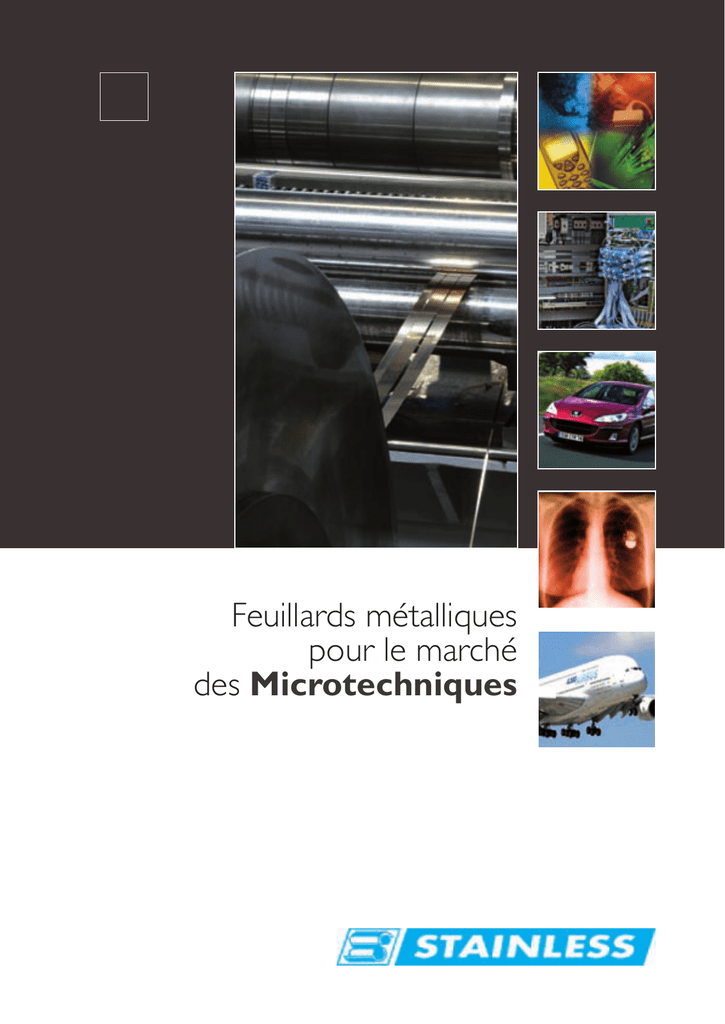 Feuillards métalliques pour le marché des Microtechniques Feuillards métalliques pour le marché des Microtechniques Cuivre-Béryllium et Nickel-Béryllium ■ Multimétalliques ■ Aciers inoxydables ■ Superalliages ■ Titane et titane allié / Alliage ToughMet ■ Nitinol en feuillard continu ■ Autres ■ Principaux domaines d’applications Datacom - Télécoms ■ électronique ■ Aéronautique ■ Automobile ■ Matériel électrique ■ Médical ■ énergie ■ Horlogerie ■ Lunetterie ■ Dômes pour microswitches ■ …■ 2 La réponse rapide à vos questions ■ Fabrication suivant spécification sans minimum de quantité Refendage à façon ■ Le stock adapté permettant de vous livrer sur disponible ■ Le service technique à votre écoute ■ La réactivité technique et commerciale pour vous accompagner dans vos développements ■ 3 Cuivre-Béryllium et Nickel-Bérylliu Alliage Cu Be Traitement thermique Rm en N/mm2 Rp 0.2 en N/mm2 Allongement A% B ou C Superficielle Conductibilité électrique % IACS ST 25 C17200 _ _ _ _ _ 3 hr à 315°C 2 hr à 315°C 2 hr à 315°C 2 hr à 315°C 470 475 560 635 755 1240 1310 1380 1415 220 290 485 585 710 2170 1155 1225 1275 50 45 30 21 10 9 6 4 3 225 225 230 240 250 295 295 305 325 115 115 155 195 250 385 390 405 410 B 60 B 60 B 80 B 90 B 100 C 40 C40 C40 C40 30T55 30T55 30T70 30T75 30T81 30N59 30N59 30N60 30N60 17 17 17 17 17 25 25 25 25 ST 190 C17200 AM (TM00) 1/4 HM (TM01) 1/2 HM (TM02) HM (TM04) SHM (TM05) XHM (TM06) XHMS (TM08) Revenu usine Revenu usine Revenu usine Revenu usine Revenu usine Revenu usine Revenu usine 720 790 880 985 1070 1135 1260 570 655 760 870 915 1055 1140 25 20 20 15 15 10 5 295 300 310 335 350 365 375 230 250 275 315 335 345 370 B 95 - C 23 C 25 C 30 C 30 C 34 C 35 C 35 30N40 30N45 30N50 30N50 30N54 30N55 30N55 20 20 20 20 20 20 20 ST 290 C17200 TM 00 TM 02 TM 04 TM 06 TM 08 Revenu usine Revenu usine Revenu usine Revenu usine Revenu usine ≥ 680 ≥ 820 ≥ 960 ≥ 1060 ≥ 1200 590 725 885 1000 1135 25 22 15 10 10 295 310 320 355 375 265 295 325 355 385 B 98 - C 31 C 30 C 35 C 35 C 40 30T81 - 30N52 30N50 30N55 30N55 30N60 20 20 20 20 20 ST 390 C17460 HT Revenu usine 1000 980 ≥1 _ _ _ _ 44 ST 60 C17460 3/4 HT (TH03) HT (TH04) Revenu usine Revenu usine 855 895 720 800 ≥ 11 ≥ 10 315 295 _ _ _ _ _ _ ≥ 50 ≥ 50 ST 174 C17410 1/2 HT (TH02) HT (TH04) Revenu usine Revenu usine 720 825 620 755 15 12 290 290 205 245 B 95 B 100 30T80 30T79 - 30N48 50 55 ST 3 C17510 AT (TF00) HT (TH04) Revenu usine Revenu usine 795 840 625 740 15 14 280 305 235 250 B 96 B100 30T80 30T80 50 55 ST 65 HT (TH04) Revenu usine 810 725 ≥5 310 _ _ _ ≥ 65 ST 47 HT (TH04) Revenu usine 930 860 ≥5 305 _ _ _ 47 A 1/4 H 1/2 H H _ _ _ _ 655-900 760-1035 900-1205 1070-1310 _ _ _ _ 30 15 4 1 106-200 153-293 160-383 180-491 4 4 4 4 AT 1/4 HT 1/2 HT HT 2h30 à 500°C 2h30 à 500°C 1h30 à 500°C 1h30 à 500°C 1480 mini 1585 mini 1690 mini 1860 mini 1035 mini 1205 mini 1380 mini 1585 mini 12 10 9 8 343-528 383-598 395-695 446-695 6 6 6 6 MH2 MH4 MH6 MH8 MH10 MH12 Revenu usine Revenu usine Revenu usine Revenu usine Revenu usine Revenu usine 1070-1240 1240-1410 1380-1550 1515-1690 1655-1860 1790-2000 690-860 825-1070 1035-1205 1170-1410 1380-1550 1515-1690 14 12 10 9 8 8 Formabilité - R/t Vickers ROCKWELL A (TB00) 1/8 H (TB00) 1/4 H (TD01) 1/2 H (TD02) H (TD04) AT (TF00) 1/4 HT (TH01) 1/2 HT (TH02) HT (TH04) ST 360 N03360 Ni Be État DURETÉ Limite de fatigue N/mm2, R = -1 (108 cycles) _ _ _ _ _ _ _ _ _ 5 5 5 5 5 5 Dimensions : Rayon de pliage / épaisseur métal - Sens travers du feuillard - R/t (2) : Rayon de pliage / épaisseur métal - Sens long du feuillard - épaisseur de 0,005 mm à 0,05 mm - largeur de 220 mm maximum - épaisseur supérieures à 0,05 mm - largeur de 300 mm maximum (1) um base base base _ base 1,9 1,9 1,9 0,35 0,35 0,35 Co _ _ _ _ _ 0,60 Ni _ _ 1,2 1,2 1,2 _ Zr _ _ _ _ _ _ Sn _ _ _ _ _ _ Ti R/t (1) R/t (2) // 0 0 0 0,5 1,0 _ _ _ _ 0 0 0 1,0 2,9 _ _ _ _ _ 0 0,5 0,5 2,5 2,8 4,0 5,0 0 0,5 1,0 2,5 3,2 5,0 10,0 _ 0 0 1,0 2,5 3,5 0 0 0,1 2,5 3 _ _ 2 2 _ 0,7 1,5 0,7 1,5 _ 0,5 1,2 0,5 5,0 Propriétés Contrainte de 75% de Rp 0,2% pendant 1000 heures 100 90 Métal à hautes caractéristiques mécaniques et conductibilité électrique modérée. Pour les états A et H, possibilité de renforcer les caractéristiques mécaniques par traitement thermique de vieillissement. 174 - 60 7025 25 390 190 80 70 60 50 40 725 30 20 521 10 688 0 100°C 200°C Température Métal à hautes caractéristiques mécaniques et conductibilité électrique modérée. Métal à hautes caractéristiques mécaniques. Formabilité améliorée. Résistance / Conductibilité Meilleur en relaxation sous contrainte. Très bon compromis résistance / conductibilité. Bon compromis résistance / conductibilité. Isotropie améliorée. Bon compromis résistance / conductibilité. Résistance / Conductibilité 250 200 Cu Be Haute résistance Alloy 190 100 Cu Be Haute conductibilité Alliages 3 - 174 - 60 - 47 Cu Sn (Bronze) 50 0 0,40 _ 1,8 _ _ _ 1,0 2,0 1,0 2,0 Bonne résistance à la température (150°C). Haute conductibilité. base 0,35 _ 1,2 0,2 0,1 _ _ _ Nuances à haute conductibilité électrique et caractéristiques mécaniques modérées. base 0,35 _ 1,2 0,2 0,1 _ _ _ _ 100 50 Cu Sn (Brass) 10 base 150 Alliages ST390 150 30 Cu Fe 50 Cu Cr (kg/mm²) base Be Relaxation sous contrainte Relaxation sous contrainte % Force restante Cu Formabilité Résistance rupture (ksi) Composition chimique 0 90 70 Conductibilité Électrique (% IACS) Conductibilités relatives Conductibilités relatives 100 Électrique (% IACS) _ Base _ _ 0,5 Thermique (W/m°C) 80 Haute résistance à la température. Haute caractéristiques mécaniques. (% IACS) 1,95 0 2 _ _ 0 3 200 60 150 40 100 20 50 0 174-60 390 HT 25 1/2 190 HM 770 S -47 HT 521 S 7025 TM 03 725 S 688 S (W/m°C) _ 0 1,2 _ _ 0 2 250 0 Hygiène industrielle L’inhalation de béryllium sous forme de p