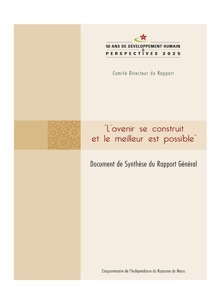 SOMMAIRE I. LE PROJET 1. Contexte et Finalités 2. Déroulement et produits du projet ... 2 . 2 4 6 II. PRESENTATION DU RAPPORT GENERAL 1. Evolution du potentiel humain du Maroc 1.1 Un peuple attaché à ses racines 1.2 Les mutations démographiques et sociales 1.3 Femmes, jeunes et diaspora 2. Système politique, institutions et gouvernance .. 7 7 8 10 . . ... ... 11 2.1 L équilibre entre stabilité institutionnelle et dynamisme oppositionnel ..... 2.2 L ouverture du champ politique . 2.3 Un mode de gouvernance qui se cherche encore .... 3. Valorisation du potentiel humain 11 12 .. 15 3.1 Accès aux services et équipements de base 3.2 Education 3.3 Santé, protection sociale et lutte contre la pauvreté 4. Mobilisation du potentiel humain 11 . . ... 15 16 17 .. 19 4.1 L édification de l économie nationale . 4.2 Des performances en demi-teinte . 4.3 Une volonté d accélération de la croissance, mais qui tarde à porter ses fruits .. 5. Cadre de vie et développement du potentiel physique 5.1. L eau 5.2. L énergie 5.3. La terre, la forêt et autres ressources 5.4. Cadre de vie et aménagement de l espace 6. L avenir en confiance 19 19 20 21 21 21 22 23 . . ... 24 6.1. Le Maroc de 2005, espace de toutes les transitions .. 6.2. Entrevoir le Maroc de demain : les atouts et n uds du futur 6.3. Le Maroc à la croisée des chemins 6.4 Aller vers 2025 : Les paris d un scénario souhaitable..... En guise d épilogue : Une invitation au débat pour un Agenda 2025 24 26 31 35 ... 41 I. LE PROJET 1. Contexte et Finalités «Il nous appartient de faire du Jubilé de l Indépendance un moment historique privilégié, et de marquer une pause pour évaluer les étapes franchies par notre pays durant un demi-siècle, en matière de développement humain, en faisant le point des succès, des difficultés, et des ambitions, et en tirant les enseignements des choix opérés durant cette période historique, et des grands tournants qui l ont marquée. Notre objectif est de consolider nos choix et orientations d avenir, clairement et en toute confiance, en soulignant au passage, en toute objectivité, les efforts extraordinaires qui ont été consentis pour mettre le Maroc sur la voie de édification de l Etat moderne. Telle est la plus belle manière d'être fidèle à la mémoire éternelle des artisans de l'indépendance de la patrie ». est en ces termes que Sa Majesté Le Roi Mohammed VI, dans Son Discours du 20 Août 2003, inaugura un projet collectif et participatif d étude, de réflexion et de débat sur l évaluation rétrospective du développement humain au Maroc depuis son Indépendance, et sur la vision de ses perspectives pour les vingt prochaines années. Ce projet prit la forme d un rapport intitulé « 50 ans de développement humain au Maroc et perspectives pour 2025 ». La finalité première de ce projet est d alimenter un large débat public sur les politiques à mettre en uvre dans le futur proche et lointain, et ce à la lumière des enseignements de l expérience des réussites et des échecs du passé. Cette offre de débat est animée par une triple conviction : - La destinée de notre pays est entre nos mains. Notre pays est à la croisée des chemins. Il a aujourd hui les moyens de s engager résolument sur la voie une grande ambition nationale, partagée par tous, et articulée autour du développement humain. Pour ce faire, la collectivité nationale a l ardente obligation d opérer des choix cohérents, d accélérer le rythme et d approfondir ampleur des réformes, et rompre définitivement avec des pratiques et comportements qui ont jusque là contrarié son développement. - Les vertus du débat public sont inestimables. Rien ne remplace, dans la gestion de la vie publique, ces forums où idées, concepts et analyses s agrègent au service d un projet national partagé. - Seule la pratique démocratique consolidée peut engager de manière irréversible notre pays sur les voies de la réussite. Exercée avec constance, portée par la responsabilité de chacun et la vigilance de tous, elle est ni un luxe ni une utopie. Conduit dans le respect des principes de participation, d indépendance scientifique et éditoriale, le projet a mobilisé plus de cent compétences nationales, relevant de l université, de l administration et de la société civile. RDH50-Synthèse, Janvier 2006 2 Le concept fédérateur du projet, celui du développement humain, a permis d embrasser un large éventail de thématiques et de questions, souvent interdépendantes et difficilement accessibles par des approches uni-disciplinaires. utilisation de ce concept, relativement récent et toujours en cours approfondissement, a indéniablement enrichi les travaux menés dans le cadre du rapport. Ces travaux ont été menés à un moment où d importants chantiers de réforme sont lancés. Le pays traverse une étape historique marquée par de multiples processus transitionnels : démocratiques et politiques, démographiques et sociétaux, économiques et culturels. C est une période de questionnements en profondeur, propice à la formulation de grands desseins, au renouveau du projet national et à l accélération du rythme de développement du pays. Pour autant, le Rapport ne perd jamais de vue que les dimensions qui déterminent le développement humain sont elles-mêmes largement déterminées, non seulement par les enjeux et les choix politiques, mais aussi par les différents contextes et conjonctures intérieurs et extérieurs, qui ont conditionné ou conditionneront ces choix. Procéder à une lecture de notre passé et de notre Histoire à la lumière de référentiels juridiques, éthiques et conceptuels d aujourd hui, sans relativiser l analyse des politiques publiques par leurs différents contextes ou par les doctrines de développement qui prévalaient au moment de leur élaboration, aurait fait courir au rapport le risque de manquer d équité et de loyauté envers les acteurs de cet