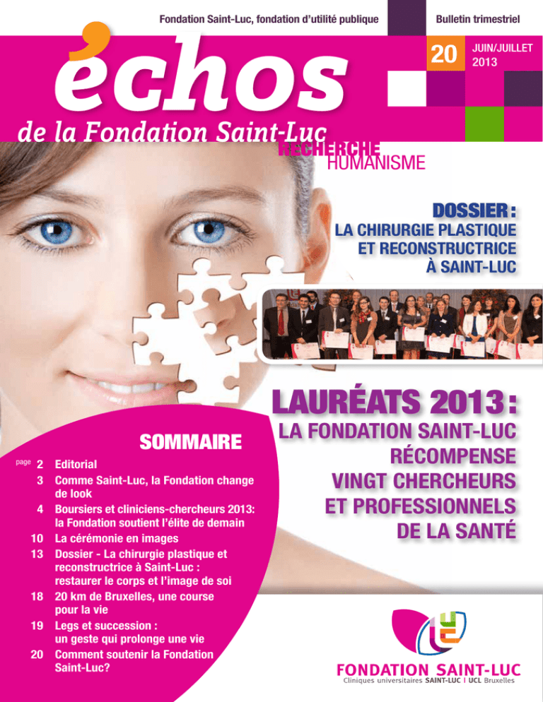 P.3 Comme Saint-Luc, la Fondation change de look P.4 Boursiers et
