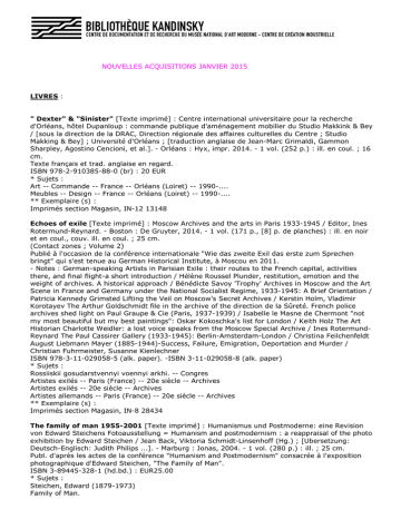 Echoes of exile [Texte imprimé] : Moscow Archives and the arts in Paris 1933-1945 / Editor, Ines
