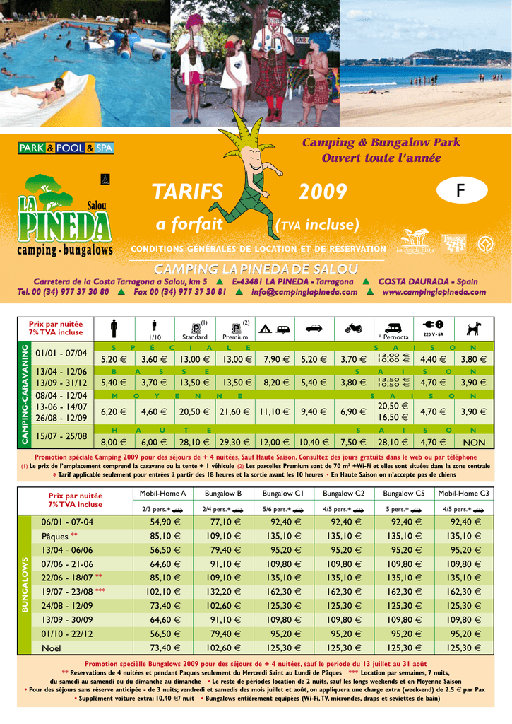 tarifs 2009 - La Pineda, camping bungalow