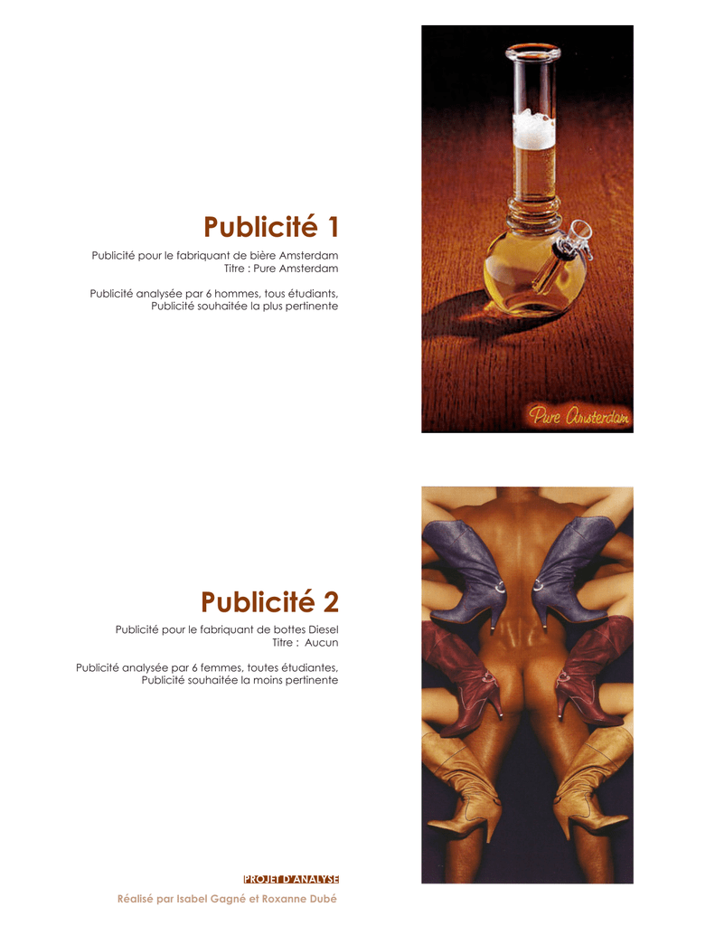 Publicité analysée par 6 femmes, toutes étudiantes,
