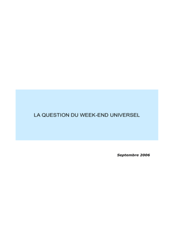 LA QUESTION DU WEEK-END UNIVERSEL Septembre 2006 LA QUESTION DU WEEK-END UNIVERSEL -----------------------------------------------------------1- Le tableau ci-dessous indique les jours de repos hebdomadaire pour les 22 pays arabes : JOURS DE WEEK-END DANS LES 22 PAYS ARABES JOURS DE WEEK-END PAYS 12SAMEDI / DIMANCHE 345- VENDREDI / SAMEDI Tunisie Maroc Mauritanie Comores Liban 6- Bahreïn 7- Egypte 8- E. A. U 9- Irak 10- Jordanie 11- Koweït 12- Qatar OBSERVATIONS 5 Pays 7 Pays 13- Syrie VENDREDI JEUDI / VENDREDI 14- Palestine 1516171819202122- Algérie Arabie Saoudite Libye Oman Soudan Yémen Djibouti Somalie 2 2 Pays 8 Pays Nous observons ainsi que : A l’heure actuelle, 14 des 22 pays arabes ont adopté soit le week-end universel (Samedi-Dimanche), soit un week-end semi-universel (VendrediSamedi), soit un seul jour de congé hebdomadaire, dans un souci de réduire l’écart avec les marchés internationaux en matière de jours non travaillés. Ces 14 pays sont les suivants : - Cinq (5) pays ont adopté le Week-end universel du Samedi-Dimanche : Tunisie, Maroc, Mauritanie, Liban, Comores. - Sept (7) pays ont adopté un week-end semi-universel (Vendredi Samedi): Bahreïn, Egypte, Emirat Arabes Unis, Jordanie, Irak, Koweït , Qatar - Deux (2) pays ont adopté un seul jour de repos hebdomadaire, le Vendredi ; il s’agit des pays suivants : Syrie, Palestine. Seuls huit (8) pays ont maintenu le Jeudi et le Vendredi comme jours de repos hebdomadaire ; il s’agit des pays suivants : Algérie, Arabie Saoudite, Djibouti, Libye, Oman, Soudan, Somalie, Yémen. 2- L’Algérie observe depuis 1976 le repos hebdomadaire le jeudi et le vendredi. Une telle situation coupe le pays de l’activité économique mondiale. Des voix s’élèvent contre cela ; le FCE se joint à elles. Les impératifs économiques nationaux nous commandent de mettre un terme à ce décalage important qui existe entre notre pays et ses principaux partenaires économiques et commerciaux avec lesquels nos relations sont limitées à trois jours ouvrables. Si le système d’économie administrée et fermée pouvait s’accommoder d’une semaine de trois jours dans ses relations avec l’extérieur, il en va autrement aujourd’hui que notre pays est engagé dans la construction d’une économie fondée sur la liberté d’entreprendre dans un contexte de mondialisation accélérée des échanges qui s’impose à l’Algérie comme à tous les pays du monde. A l’heure où l’intégration de notre économie à l’espace euro-méditerranéen auquel elle est naturellement liée est déjà pleinement engagée, à l’heure où notre pays engage plus globalement un processus fondamental d’insertion de son économie dans l’économie mondiale, et à l’heure où notre pays conduit une politique de relance d’une ampleur sans précédent, nous avons plus que jamais 3 besoin de travailler en phase avec nos partenaires, à temps plein, 5 jours et plus par semaine. Dans le contexte actuel, le week-end algérien constitue un anachronisme préjudiciable à notre économie. Le week-end qu’observe notre pays compromet gravement les relations économiques, mais aussi les relations sociales, avec nos partenaires, qui sont pour l’essentiel européens. Les temps ont changé, l’Algérie et le monde qui l’entoure aussi ; nous devons nous adapter pour être en harmonie avec le reste du monde. A moins d’avoir la garantie d’une rente inépuisable et de fonder exclusivement sur cette rente le devenir du pays, on ne peut faire autrement que d’organiser cette harmonie avec les autres pays du monde. Nous constatons bien que de nombreux pays arabes, parmi ceux disposant justement d’une rente considérable, ont compris cela et tentent de s’adapter. 3- L’impact économique de l’abandon du week-end universel en 1976 par notre pays ne semble pas avoir jamais fait l’objet d’une évaluation susceptible de révéler ses conséquences précises sur notre économie. Des chiffres ont été cependant avancés quant au coût financier (manque à gagner) du décalage : entre 500 et 750 millions de dollars par an ! Les experts de la Banque mondiale soutiennent, quant à eux, que le passage au week-end universel devrait générer une croissance de 1 à 2 % du PIB. 4- Au Maghreb, l’Algérie est le seul pays avec la Libye à avoir encore une semaine de trois jours d’activité économique pleine pour ses échanges avec l’étranger. Le Maroc et la Tunisie ont adopté depuis longtemps le week-end universel ; la Mauritanie les a rejoint en 2005. 4