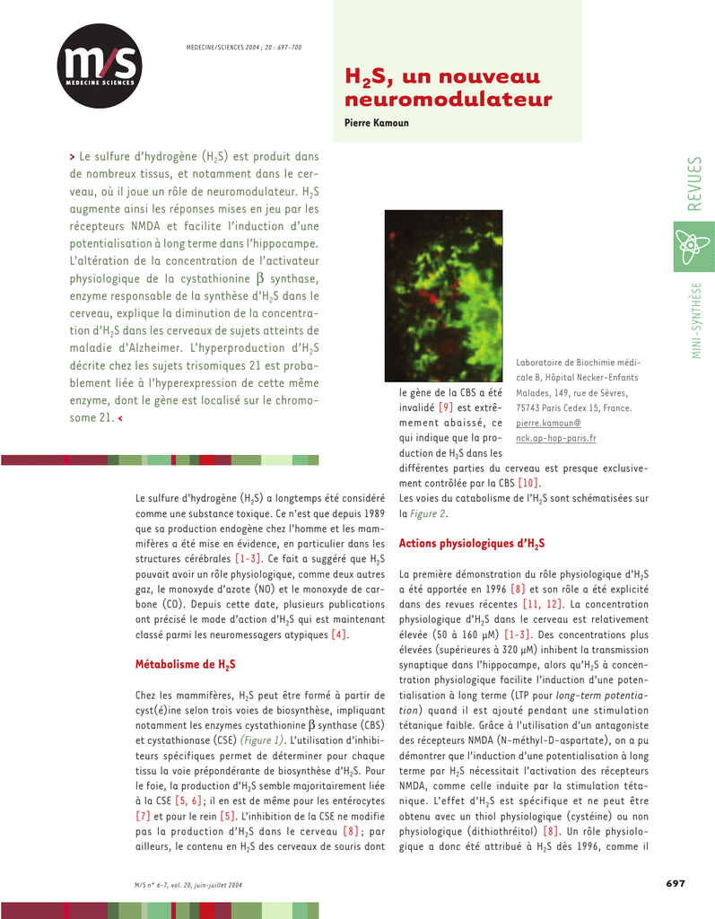 H2S, un nouveau neuromodulateur