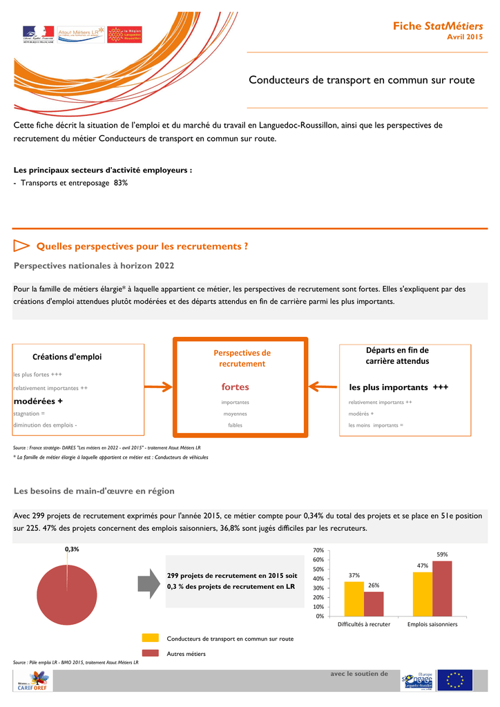 Conducteurs de transport en commun sur route Fiche StatMétiers