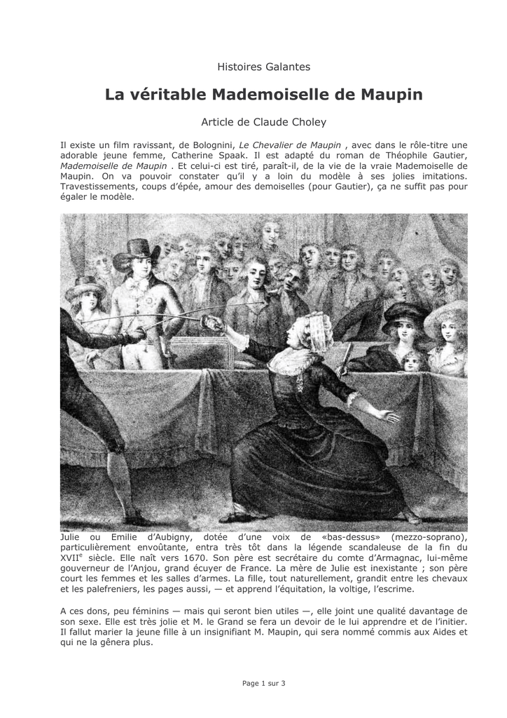 La véritable Mademoiselle de Maupin