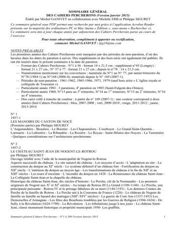 Sommaire des Cahiers Percherons