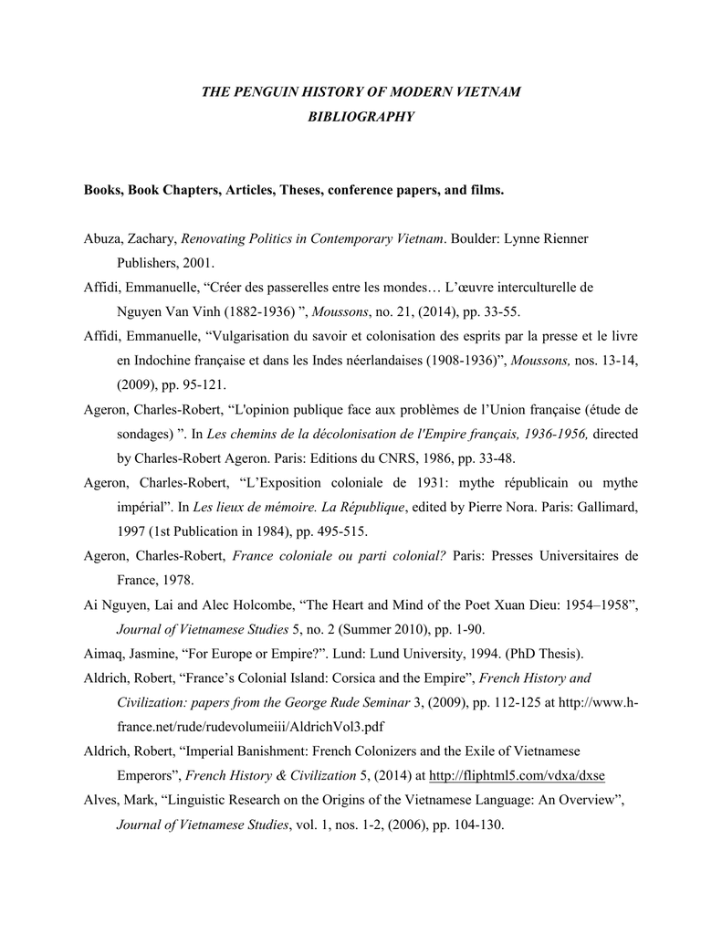 THE PENGUIN HISTORY OF MODERN VIETNAM BIBLIOGRAPHY