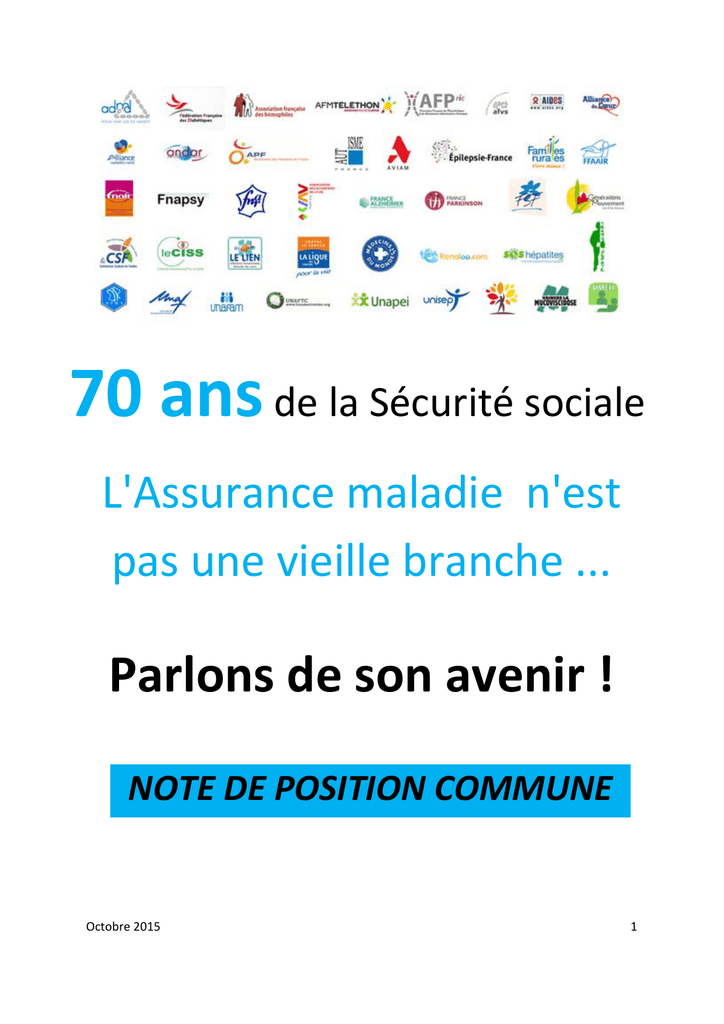 70 ans de la Sécurité sociale L'Assurance maladie n'est pas une vieille branche ... Parlons de son avenir ! NOTE DE POSITION COMMUNE Octobre 2015 1 70 ans de la Sécurité sociale, le système a tenu le choc, il reste plébiscité par les Français. 70 ans de sécurité sociale ! Cet anniversaire est d’abord une bonne nouvelle. Cela veut dire que l’édifice de solidarité face aux risques, notamment la maladie, construit après 1945 et inspiré par les idéaux du Conseil national de la résistance, a tenu le choc. D’abord sans trop de difficultés car il a longtemps été alimenté par la croissance, notamment pendant les Trente Glorieuses. Pourtant, il est menacé sur le plan financier, et critiqué pour la qualité de ses prestations qui se dégrade. Chacun connaît l’importante tension sur les comptes de l’Assurance maladie. Elle n’est pas nouvelle. Nous y avons répondu par l’endettement, notamment en glissant régulièrement le déficit dans la Caisse d’amortissement de la dette sociale. Aux générations futures, donc, de s’arranger avec les déficits : pas très glorieux. Célébrer son anniversaire doit être l’occasion de rappeler les défis auquel notre système doit faire face. 70 ans de sécurité sociale… C’est donc maintenant un défi. Un défi aux nombreux visages. D’abord, celui de la réduction des restes‐à‐charge. Notamment dans la prise en charge des soins courants où les assurances complémentaires en arrivent à faire part égale avec l’assurance maladie obligatoire. Mais aussi pour les affections de longue durée où l’on observe des restes à charge insupportables : plusieurs milliers d’euros par an, démentant la garantie du 100 % Sécu pour ce type d’affections. Ensuite, celui de l’explosion des dépenses. Notamment face aux prix astronomiques revendiqués et obtenus par les industries du médicament. Là où les travaux d’économistes évaluent le prix du développement et de la fabrication d’un médicament à quelques centaines d’euros, on observe des prix en milliers d’euros ! Devoir choisir entre les malades ceux qui pourront être les bénéficiaires des traitements innovants, c’est ce que nous avons commencé à faire dans le domaine de l’hépatite C. Enfin, celui de la solidarité. Nous consentons tous à cotiser pour l’Assurance maladie. Pour autant nous n’accédons pas tous de la même façon à l’offre de soins. Les déserts médicaux sont toujours en progrès. Bien sûr, sur la foi de comparaisons internationales, les statisticiens font valoir qu’il y a suffisamment de médecins pour soigner tout le monde. Peut‐ Octobre 2015 2 être. Mais ce qui ne va pas assurément, c’est l’inorganisation du système de santé : des CHU très onéreux et des hôpitaux de proximité qui se raréfient, un exercice médical isolé là où il est pourtant prouvé que l’exercice collégial est plus pertinent, une rémunération à l’acte même lorsqu’il est démontré que la rémunération au forfait est plus adaptée, des médecins pour diagnostiquer et prescrire mais peu de professions intermédiaires pour le suivi ou l’accompagnement des malades et de leur entourage. Bref, l’assurance maladie à la française est un succès en trompe‐l’œil. Dont les résultats impactent sa légitimité aux yeux du cotisant. Pourquoi continuer à payer très cher ce système qui malgré ses vertus comporte des défauts aussi caractérisés ? Notre système est perfectible. Et son amélioration peut en assurer la pérennité. Nous pouvons améliorer notre système de prise en charge. Si nous en faisons une cause commune. Car nous ne manquons pas de leviers pour le rendre plus juste en même temps que plus efficace. Les médecins eux‐mêmes reconnaissent que 30 % des prescriptions sont inutiles. Quand aurons‐nous le courage de modifier ces pratiques ? Nous consentons collectivement des prix astronomiques pour les médicaments, comme l’a encore montré récemment le cas du Sofosbuvir, ou pour les dispositifs médicaux, tels que les prothèses auditives et les fauteuils roulants électriques. Comment arrêter cette logique infernale ? Il nous faut pour cela faire un nouveau pari de solidarité pour les 70 ans à venir. Modestement, le Collectif Interassociatif Sur la Santé entend y apporter sa pierre. A partir des préoccupations de ses membres. Nous formulons des propositions très concrètes autour de trois orientations prioritaires : Gagner le pari de la modernisation : en faisant évoluer les garanties en matière d’insertion professionnelle pour les personnes atteintes de maladie chronique. Gagner le pari de la solidarité : en réduisant les restes‐à‐charge des malades. Gagner le pari du progrès démocratique : en améliorant la participation des usagers et de leurs représentants dans les instances. Octobre 2015 3 SOMMAIRE PARTIE 1 / Maladie chronique et travail : faire évoluer les règles régissant le rapport maladies chroniques et travail 6 Section 1 / Pour que l’invalidité ne soit plus un frein à la reprise d’un travail Modifier les modalités de révision de la pension d’invalidité Modifier les modalités de révision du salaire de comparaison 7 7 10 Section 2 / Pour que les travailleurs soient plus nombreux à avoir droit aux indemnités journalières en cas de maladie 12 Assouplir les conditions d’octroi des indemnités journalières au bénéfice des travailleurs à temps très réduit 12 Modifier les règles d’imputations des indemnités journalières 13 Modifier le droit aux indemnités journalières des chômeurs ayant repris une activité professionnelle depuis plus de 3 mois 16 Section 3 / Pour une égalité de traitement des personnes en temps partiel thérapeutique 18 Mettre fin aux inégalités de traitement des assurés sociaux vis‐à‐vis du temps partiel thérapeutique 18 Octobre 2015 4 PARTIE 2 / Pour rendre l’accès aux soins plus égalitaire Sec