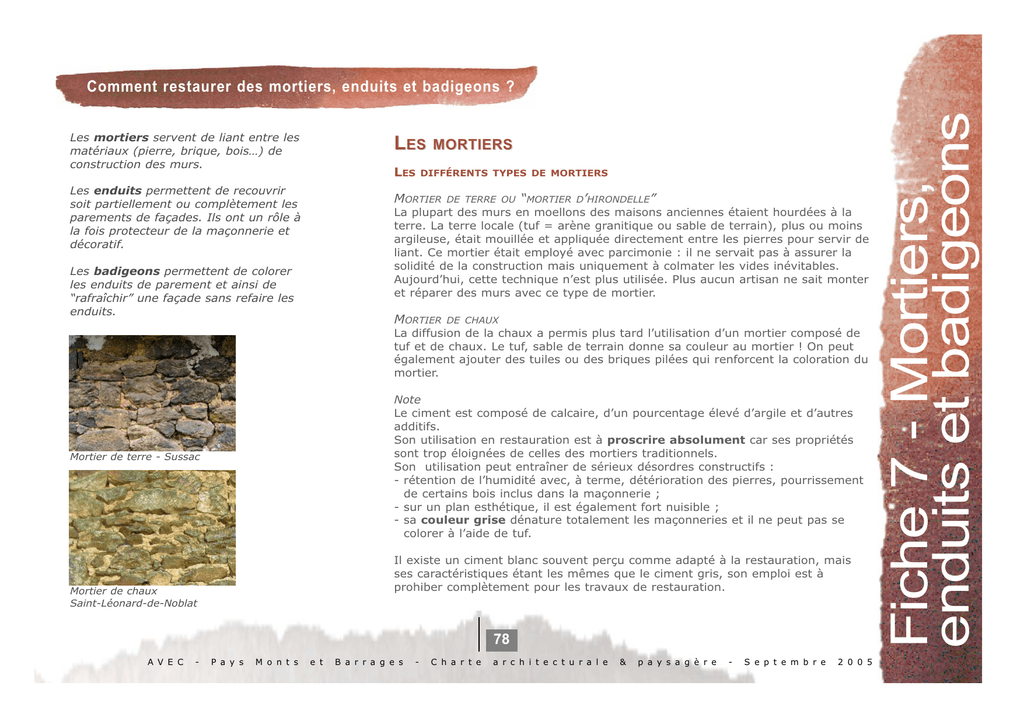 Fiche 7 - Mortiers, enduits et badigeons