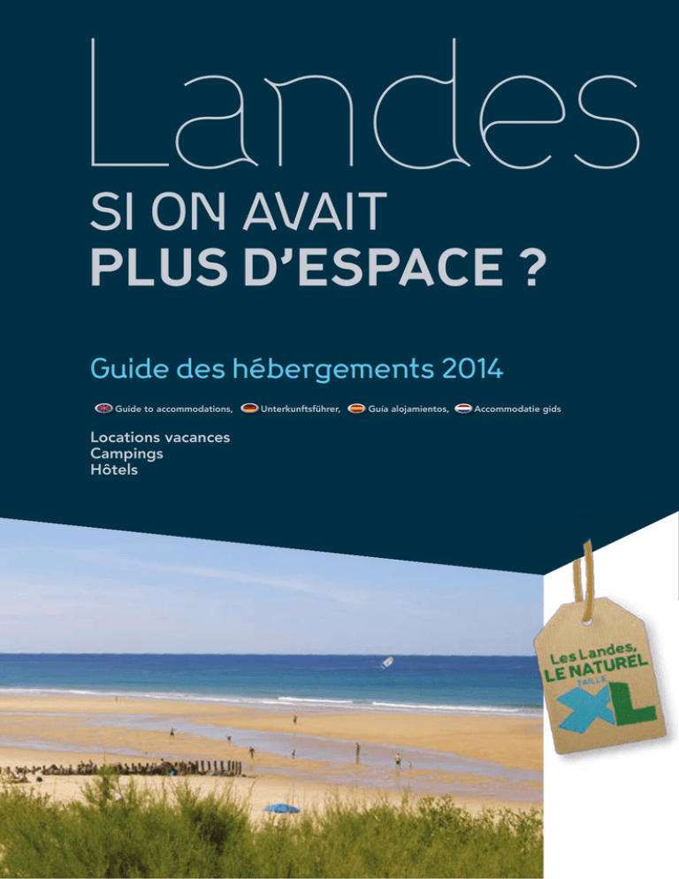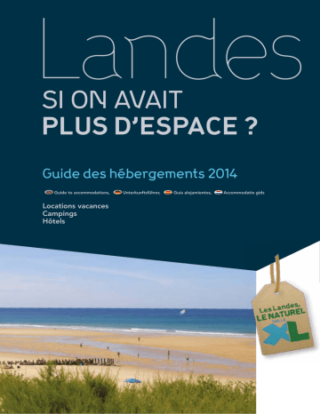 Landes SI ON AVAIT PLUS D’ESPACE ? Guide des hébergements 2014 Guide to accommodations, Locations vacances Campings Hôtels Unterkunftsführer, Guía alojamientos, Accommodatie gids Sommaire Sumario, Summary, Inhaltsverzeichnis, Inhoud Bienvenue dans les Landes 5-9 Présentation des Landes 10-11 Marque “Qualité Tourisme” Campings 12-13 14-33 34-35 36-37 Légende des pictos Campings (liste alphabétique) Aires naturelles Aires de camping-cars 38 Vélodyssée ® - Accueil vélo Hôtels 40-41 Légende des pictos 42-52 Hôtels (liste alphabétique) 54-56 Résidences de Tourisme Locations vacances 58 Villages Vacances 60-62 Offices de Tourisme 63 Maisons familiales (agréées par la Préfecture) 64-65Clévacances 66-67 Agences de locations saisonnières 68-69 Gîtes de France (agréés Chambre d’Agriculture Landes) 70-71 Label Tourisme et Handicap Comité Départemental du Tourisme des Landes 4, avenue Aristide Briand - BP 407 40012 Mont-de-Marsan Cedex Téléphone +33 (0)5 58 06 89 89 Fax +33 (0)5 58 06 90 90 www.tourismelandes.com [email protected] 72-73 Centres de vacances - Centres sportifs 74 Hébergements pêche 75 Carte du département C’est tout naturellement que la diversité des paysages se retrouve dans les différents modes d’hébergements (classés auprès d’organismes habilités) : meublés, hôtels, campings, hébergements collectifs. Ils vous proposeront également un large choix d’équipements et de services. N.B. : les prix qui figurent dans ce guide nous ont été communiqués courant 2013 et sont donnés à titre indicatif. Ils sont donc susceptibles de subir une hausse en 2014. Pour toute précision, il est conseillé de s’en assurer auprès des gestionnaires d’hébergement. Bon séjour dans les Landes, et n’hésitez pas à nous contacter pour toute demande d’informations complémentaires sur notre site. Bienvenida a las Landas Welcome to the Landes Campings Campings 5-9 10-11 12-13 14-33 34-35 36-37 Las Landas “Qualité Tourisme” Significado de los pictogramas Lista alfabética de los campings Areas naturales de camping Areas de camping-cars 5-9 10-11 12-13 14-33 34-35 36-37 The Landes “Qualité Tourisme” Key to symbols Alphabetical list of camping sites Camping natural areas Motorhome areas 38 Vélodyssée ® - Accueil vélo 38 Vélodyssée ® - Accueil vélo Hôtels 40-41 Significado de los pictogramas 42-52 Lista alfabética de los hoteles 54-56 Residencias de Turismo Hotels 40-41 Key to symbols 42-52 Alphabetical list of hotels 54-56 Tourist flats Location vacances 58 60-62 63 64-65 66-67 68-69 Complejos de vacaciones Oficinas de Turismo Casas Familiares Clévacances Agencias de Alquiler estacional de amueblados Alojamiento tipo agroturismo : Gîtes de France 70-71 Tourisme & Handicap 72-73 Centros de Vacaciones y centros deportivos 74 Alojamiento con label de pesca 75 Mapa del departamento Rental holidays 58 60-62 63 64-65 66-67 Villages vacances Tourist offices Family houses Clévacances Agencies for the seasonal rent of furnished accommodation 68-69 Rural accommodation : Gîtes de France 70-71 Tourisme & Handicap 72-73 Holiday centers and Sports centers 74 Fishing accommodation 75 Map of department Naturalmente, la diversidad de los paisajes se encuentra en los diferentes modos de alojamiento clasificados por organismos habilitados : alquileres de vacaciones, hoteles, campings, alojamientos colectivos que proponen numerosas posibilidades de equipamientos y de servicios. Les Landes area is renown for the diversity of his landscapes. This diversity can be found in the different types of accommodation approved by accredited organisms: furnished flats and houses, hotels, camping sites, group accommodation, all with a wide range of equipment and services. N.B. : Los precios que figuran en esta guía son los que han sido comunicados en el transcurso del año 2013, y se dan a tìtulo indicativo. Pueden experimentar una alza en 2014. Para cualquier precisión, es preferible informarse con los gestionarios de actividades. Buena estancia en las Landas y no duden en consultarnos para cualquier tipo de solicitud de información complementaria. Todas estas informaciones están facilitadas en el Sitio : www.landas-vacaciones.com N.B. : The prices which appear in this guide are those of 2013 and are given for information only. Price rises in 2014 are possible. For further details we advise you to contact the management of the accommodation. Enjoy your stay in the Landes and do not hesitate to contact us for any further details. All this information is also available on our website : www.landes-holidays.com Willkommen in die Landes 5-9 Die Landes 10-11 “Qualité Tourisme” Welkom in de Landes 5-9 Les Landes 10-11 “Qualité Tourisme” Campingplätze Campings 12-13 14-33 34-35 36-37 Zeichenerklärung Liste von campingplätze Landcampingplätze Stellplätze für Wohnmobile 12-13 14-33 34-35 36-37 Verklaring der tekens Campinglijst in alfabetische volgorde Aires naturelles de camping (natuur camping) Overnacht terrein voor kampeerwagens 38 Vélodyssée ® - Accueil vélo 38 Vélodyssée ® - Accueil vélo Hotels 40-41 Zeichenerklärung 42-52 Liste von hotels 54-56 Ferienresidenzen Hotels 40-41 Verklaring der tekens 42-52 hotellijst in alfabetische volgorde 54-56 Appartementen met hotelservice Ferienvermietungen 58 60-62 63 64-65 66-67 68-69 Feriendörfer Fremdenverkehrsvereine Familienhäuser Clévacances Vermietungs Agenturen für Ferienhaüser Unterkunft auf dem Lande : Gîtes de France Vakantiewoningen 58 60-62 63 64-65 66-67 68-69 Vakantie dorpen Toeristenbureaus Familie Huizen/Kinder-Gîtes Clévacances Verhuur van vakantiewoningen en appartementen Accommodatie : Gîtes de France 70-71 “Tourisme & Handicap” 72-73 Ferienzentrum und Sportzentrm 70-71 “Tourisme & Handicap” 72-73 Vakantie centrum, Sport centrum 74 Unterkunft für Fischer 74 Accommodatie speciaal voor vissers 75 Karte des Departements Landes 75 Kaart van Les Landes Sie 