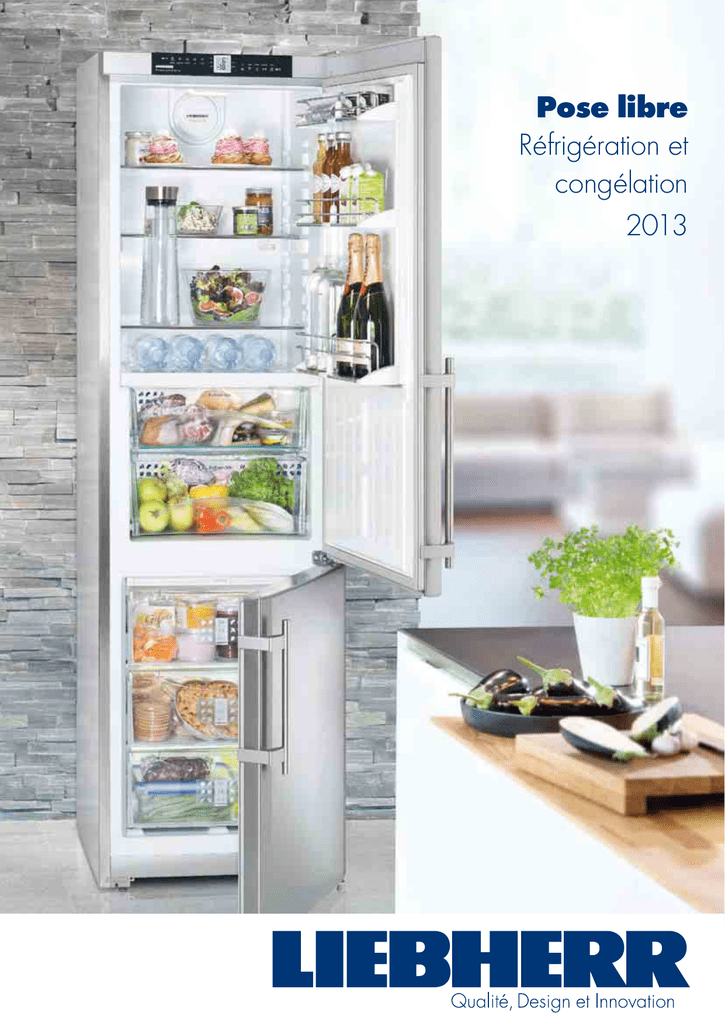 Pose libre Réfrigération et congélation 2013 10 bonnes raisons d’acheter un appareil Liebherr 1 La maîtrise du froid Depuis plus de 60 ans, Liebherr s’est imposé en tant que spécialiste du développement et de la fabrication de réfrigérateurs et congélateurs de grande qualité, au design irréprochable. De nouvelles solutions viennent régulièrement améliorer la qualité de conservation et optimiser la consommation d’énergie, pour le confort de l’utilisateur. 2 L’exigence de la qualité Des matériaux de première qualité, une fabrication parfaite jusque dans les moindres détails, des commandes électroniques pratiques, fiables et précises : nous avons pour tous nos appareils les mêmes exigences. La longévité des appareils qui fait notre force, s’obtient par de nombreux contrôles de finition et de fonctionnalité tout au long du processus de fabrication. 3 Un Design hors du temps Une association de lignes et de matériaux contemporains combinés à des formes élégantes et intemporelles composent une esthétique imaginée pour défier le temps. 4 Le respect de l’environnement Le concept ActiveGreen de Liebherr regroupe des méthodes de production écologiques, l’utilisation de matériaux recyclables et des mesures de réduction de la consommation d’énergie. 100 % de la gamme utilise des gaz propres, la consommation d’énergie affiche des niveaux inférieurs de 50 % aux standards habituels et la chaleur générée durant le processus de fabrication est réinjectée dans les circuits de chauffage du site de production. 6 BioFresh : la fraîcheur longue durée La combinaison d’une température légèrement supérieure à 0 °C et d’une hygrométrie parfaitement adaptée vous permet de conserver la valeur nutritionnelle, le goût et les vitamines des produits frais beaucoup plus longtemps. Parce que Liebherr se soucie de votre vitalité et de votre forme ! 7 NoFrost : Fini le givre! La technologie NoFrost offre une qualité de froid digne d’un professionnel. Un ventilateur puissant insuffle l’air froid dans chaque tiroir et évacue l’humidité vers l’extérieur. Les aliments ne collent plus entre eux et vous pouvez dire adieu à la corvée de dégivrage! 8 Un cocon pour vos meilleurs crus 9 Récompenses attribuées à notre gamme de produits Les armoires de vieillissement et de mise en température Liebherr bénéficient d’une technologie de pointe pour préserver les caractéristiques uniques de vos crus. Une régulation précise, une isolation renforcée, une hygrométrie parfaite ainsi que des protections contre la lumière et les vibrations font de ces caves un véritable cocon pour vos vins! La qualité exceptionnelle du design et des produits Liebherr est sans cesse confirmée par des organismes indépendants. A l’occasion du « Plus X Award », Liebherr a ainsi été élue « Marque spécialisée de l’année 2012 ». Les appareils Liebherr sortent également fréquemment gagnants des tests de la revue allemande des consommateurs « Stiftung Warentest », comme par exemple les modèles CBNPes 3756, CBNPes 3956, GNP 3666, GTP 2356 et KP 3620. Les appareils Liebherr sont en outre régulièrement recompensés par le prestigieux « Red Dot Award », entre autres le CBNes 6256 et le SBSes 7165 couronnés « Best of the Best », et tout récemment la WTes 5872, lauréate du « Red Dot Design Award 2012 ». Initiative »Besser Leben« KüchenInnovation des Jahres 2007 ® 1st Prize for major appliances/cooling Liebherr Built-in BioFresh fridge-freezer ICBN 3066 5 Economies d’énergie Liebherr s’engage à réduire vos dépenses énergétiques grâce à l’utilisation d’une électronique de pointe pour un réglage au degré près et de systèmes de distribution du froid ultra efficaces. Chaque famille de produits offre des modèles A++ et A+++, les classes énergétiques les plus performantes. 10 La gamme la plus variée Qu’il s’agisse de réfrigérateurs et congélateurs pose libre, d’appareils encastrables sous plan ou intégrables, ou qu’il s’agisse de refroidir, de congeler ou les deux associés, avec un assortiment de plus de 200 modèles, Liebherr offre la solution fraîcheur parfaite pour presque tous les désirs du client. CBNPgw 3956 3 Sommaire Page Appareils BioFresh Des idées innovantes, une qualité de pointe, un design optimal Depuis plus de 60 ans, Liebherr signe l’innovation. Spécialiste européen des appareils de froid, nous cherchons et développons sans relâche de nouvelles solutions et des procédés de fabrication modernes et innovants. Des matériaux de grande qualité, une fabrication parfaite jusque dans les moindres détails, des commandes électroniques pratiques, fiables et précises : nous avons pour tous nos appareils les mêmes exigences. Soucieux de la protection des ressources, nous avons développé une large gamme de produits dotés des meilleures performances énergétiques, le classe A+++. Notre programme BioFresh exclusif garantit des conditions parfaites qui prolongent la fraîcheur de vos aliments et leur saveur. Nos appareils NoFrost assurent une congélation de qualité professionnelle. Liebherr, c’est aussi une gamme de caves à vin de conservation et de dégustation parmi les plus larges du marché. Combinés réfrigérateur-congélateur BioFresh et NoFrost Réfrigérateurs BioFresh 6 – 13, 20 14 – 19, 21 Combinés et réfrigérateurscongélateurs Combinés avec NoFrost ou SmartFrost 22 – 31, 36 Combinés et Réfrigérateurs-conge- 32 – 35, 37 lateurs avec NoFrost ou SmartFrost Réfrigérateurs armoires 38 – 39, 44 Réfrigérateurs table-top 40 – 43, 45 CBNes 6256 et Combinés Side-by-Side 46 – 57 Congélateurs armoires 20% plus économique que la classe la plus haute A+++* Avec le combinés CBP(esf) 4043, Liebherr ouvre une nouvelle dimension de l’économie d’énergie. Ce modèle consomme 20% d’énergie de moins que la classe énergétique la plus perf