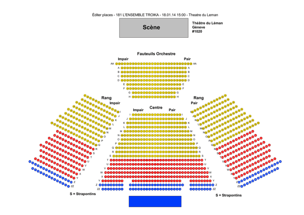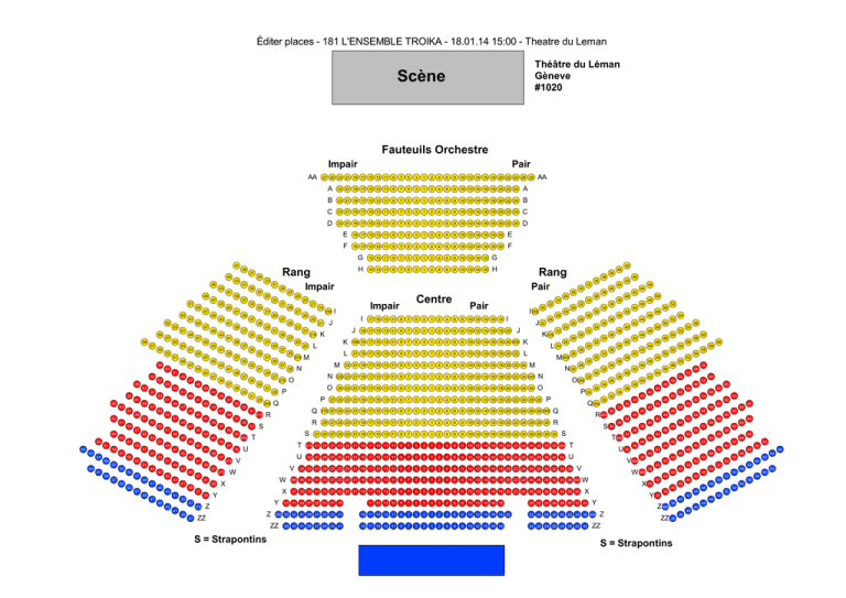 Éditer places - 181 L'ENSEMBLE TROIKA - 18.01.14 15:00 - Theatre du Leman Théâtre du Léman Gèneve #1020 Scène Fauteuils Orchestre Impair AA 41 37 35 43 33 45 41 43 41 49 37 41 51 59 57 55 63 65 63 65 65 59 61 43 51 49 39 37 45 45 49 55 37S 43 43 47 53 37S 47 47 51 57 37 41 49 53 59 41 41 45 51 35 39 51 55 61 41 53 57 63 37 45 53 39 39 43 49 33S 39 47 55 33 41 43 55 59 33 43 45 57 35 35 47 49 57 37 37 49 51 37 41 47 35 39 45 31S 39 45 53 59 63 41 47 55 61 61 31 39 49 51 63 63 41 51 53 29S 33 43 55 57 35 45 57 59 29 43 53 61 31 45 55 37 43 37S 41 39 37 29 37 47 59 31 39 49 27S 33 33 47 57 61 35 35 49 59 63 27 37 41 51 25 29 39 43 53 61 27 37 45 51 25S 29 31 39 47 53 55 31 33 41 55 57 25 35 41 43 57 59 27 37 43 49 10 12 14 16 18 20 22 24 26 28 2 4 6 8 10 12 14 16 18 20 22 24 B 23 21 19 17 15 13 11 9 7 5 3 1 2 4 6 8 10 12 14 16 18 20 22 24 B 23 21 19 17 15 13 11 9 7 5 3 1 2 4 6 8 10 12 14 16 18 20 22 24 C D 23 21 19 17 15 13 11 D 9 7 5 3 1 2 4 6 8 10 12 14 16 18 20 22 24 E 19 17 15 13 11 9 7 5 3 1 2 4 6 8 10 12 14 16 18 20 E F 19 17 15 13 11 F 9 7 5 3 1 2 4 6 8 10 12 14 16 18 20 G 15 13 11 9 7 5 3 1 2 4 6 8 10 12 14 16 G H 15 13 11 9 7 5 3 1 2 4 6 8 10 12 14 16 H Centre P S T T U U V V Y Z 40 38 36 I J J 17 15 13 11 19 17 15 13 11 9 9 7 7 5 5 3 3 1 1 2 2 4 4 6 6 8 8 10 12 14 16 18 24 I 10 12 14 16 18 20 L 21 19 17 15 13 11 9 7 5 3 1 2 4 6 8 10 12 14 16 18 20 22 23 21 19 17 15 13 11 9 7 5 3 1 2 4 6 8 10 12 14 16 18 20 22 24 5 3 1 2 4 6 8 10 12 14 16 18 20 20S L 7 5 3 1 2 4 6 8 10 12 14 16 18 20 22 24 24S N O 25 23 21 19 17 15 13 11 9 7 5 3 1 2 4 6 8 10 12 14 16 18 20 22 24 26 O Q 27S 27 25 23 21 19 17 15 13 11 R 29 27 25 23 21 19 17 15 13 11 9 9 9 7 7 7 5 5 5 3 3 3 1 1 1 2 2 2 4 4 4 6 6 6 8 8 8 10 12 14 16 18 20 22 24 26 28 3 1 2 4 6 8 10 12 14 16 18 20 22 24 26 28 30 32 5 3 1 2 4 6 8 10 12 14 16 18 20 22 24 26 28 30 32 32S 5 3 1 2 4 6 8 10 12 14 16 18 20 22 24 26 28 30 32 34 U V 7 5 3 1 2 4 6 8 10 12 14 16 18 20 22 24 26 28 30 32 34 36 W 9 7 5 3 1 2 4 6 8 10 12 14 16 18 20 22 24 26 28 30 32 34 36 36S X 37 35 33 31 29 27 25 23 21 19 17 15 13 11 5 3 1 2 4 6 8 10 12 14 16 18 20 22 24 26 28 30 32 34 36 38 W X Y 17 15 13 11 9 7 5 3 1 2 4 6 8 10 12 14 16 18 20 22 24 26 28 30 32 34 19 17 15 13 11 9 7 5 3 1 2 4 6 8 10 12 14 16 18 20 22 24 26 28 30 32 34 36 36S 19 17 15 13 11 9 7 5 3 1 2 4 6 8 10 12 14 16 18 20 22 24 26 28 30 32 34 35 33 31 29 27 25 23 21 44 50 56 42 64 62 48 44 54 40 50 52 40 46 52 50 48 46 38 S = Strapontins 44 42 40 38 62 60 58 56 54 44 42 40 ZZ 36 58 56 54 52 50 48 38 62 60 50 48 46 44 42 66 64 56 54 48 46 44 42 ZZ 60 58 52 38 62 58 56 42 64 60 46 38 66 54 52 50 40 64 62 60 58 48 46 44 Z 38S Z 58 56 54 52 42 Y 36 33 31 29 27 25 23 21 19 52 40 38 62 60 50 48 46 X 40 35S 35 33 31 29 27 25 23 21 ZZ 42 34 66 64 56 54 40 38 36 W 38S 60 58 46 38 64 62 50 48 44 36 V38S 9 7 46 42 U 36 54 52 44 40 T34S T 35 33 31 29 27 25 23 21 19 17 15 13 11 9 36 60 58 56 50 48 34 S 5 7 58 56 54 52 40 32 60 48 46 44 42 38 S 34 7 40 32 R 52 50 38 36 34 R32S 9 7 36 30 56 54 44 42 34 32 Q 52 50 48 46 40 Q 30s 9 48 38 30 56 54 46 44 42 30 P 31 29 27 25 23 21 19 17 15 13 11 9 38 28 60 58 52 50 36 34 32 P 10 12 14 16 18 20 22 24 26 28 30 42 32 58 56 54 40 30 60 48 46 44 36 O28S 10 12 14 16 18 20 22 24 26 28 28S 42 34 28 52 50 40 38 28 31S 31 29 27 25 23 21 19 17 15 13 11 33 31 29 27 25 23 21 19 17 15 13 11 34 26 56 54 46 44 32 30 N 26 9 38 28 M26S 50 48 36 26 52 42 40 32 M 23S 23 21 19 17 15 13 11 36 30 54 44 34 22 L 24 N 27 25 23 21 19 17 15 13 11 26 K 46 38 24 52 50 48 40 28 K22S 48 46 44 42 30 24 50 38 36 34 32 26 J 19S 19 17 15 13 11 7 34 30 28 J 22 42 40 32 20 46 44 38 36 22 K 9 28 20S I 44 42 40 26 Pair 46 34 32 30 35S 35 33 31 29 27 25 23 21 19 17 15 13 11 W Y I M Q X Impair L P 42 Rang Pair K O AA A C M S S = Strapontins 8 1 N R Z ZZ 23 33 45 45 51 25 35 47 47 27 29 39 49 21S 31 41 51 53 59 33 37 49 21 29 39 51 55 31 41 43 53 21 23 35 45 53 25 37 47 55 57 23 33 43 6 3 25 35 45 4 5 19S 27 39 49 59 29 37 47 2 7 19 27 39 49 53 1 9 21 29 31 43 3 23 21 19 17 15 13 11 23 31 33 41 45 55 33 35 43 47 5 25 37 45 49 51 27 35 47 51 53 29 39 7 Impair 31 39 9 A Rang 39 45 Pair 27 25 23 21 19 17 15 13 11