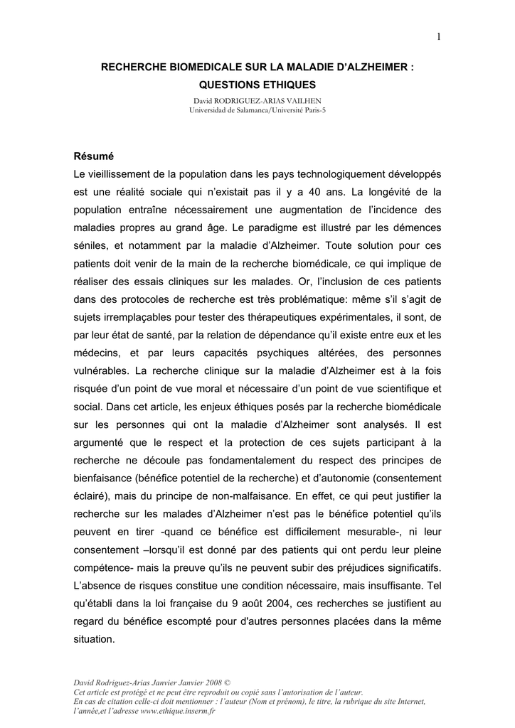 1 RECHERCHE BIOMEDICALE SUR LA MALADIE D`ALZHEIMER