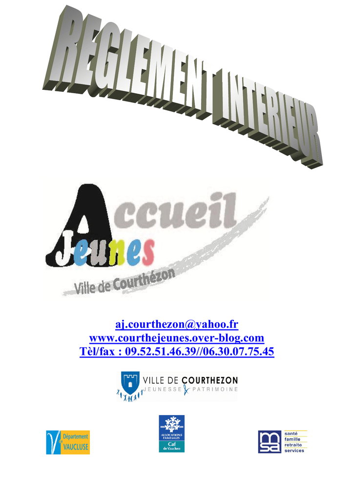 [email protected] www.courthejeunes.over-blog.com Tèl/fax : 09.52.51.46.39//06.30.07.75.45 ACCUEIL JEUNES MUNICIPAL Mairie de Courthézon *** REGLEMENT INTERIEUR ACCUEIL JEUNES L’Accueil Jeunes de COURTHEZON est soumis à la réglementation suivante : 1) Nature et Capacité L’Accueil Jeunes est une structure municipale de loisirs spécifique pour les adolescents. Sa capacité d’accueil en tant que Club jeunes est fixée à 40 adolescents à l’intérieur des locaux, et à 1 animateur pour 12 ados maxi lors des sorties ou séjours. 2) Responsabilité La responsabilité administrative et financière de la structure est assurée par le responsable du service Education / Enfance / Jeunesse, Yannick GONZALEZ. Sous la responsabilité de l’autorité territoriale, il participe à l’élaboration et au suivi des projets, à l’organisation du service, au suivi et à la gestion du personnel dans leur travail. La direction du Club Jeunes est assurée par l’animateur référent Stéphane BROSSARD. Il est chargé du suivi administratif, financier et pédagogique relatif à la structure. Dans ses missions il est assisté par Anne DEBIEVE, Educatrice sportive et animatrice jeunes. 3) Habilitation L’Accueil Jeunes est habilité pour son fonctionnement par la DDCS (Direction Départementale de la Cohésion Sociale) sous le statut juridique de « Club jeunes ». La DDCS veille au bon déroulement et à l’application de la réglementation en vigueur, ainsi qu’à la pertinence des projets mis en place. D’autres organismes ou institutions peuvent également être amenés à contrôler la structure, MSA, CAF … 4) Encadrement Les adolescents sont confiés à des animateurs diplômés d’au moins un des diplômes requis (BAFA, BEATEP, BEESAPT, BPJEPS, ETAPS …), Ils sont chargés d’assurer une animation variée, de qualité et adaptée aux adolescents en fonction du projet pédagogique. Ils assurent la sécurité morale, physique et affective de ces derniers. 5) Admission Les adolescents ou préadolescents peuvent intégrer la structure dès leur admission au collègue. Ils ont ainsi la possibilité de fréquenter le club jeunes à partir des vacances d’été précédent leur rentrée en 6ème et jusqu’au jour anniversaire de leur 18 ans. Toutefois, une fois majeur, les « anciens adhérents » ayant préalablement participé activement à différents projets pourront à titre exceptionnel participer à des actions ciblées pour permettre d’assurer une certaine continuité à l’action. Ces jeunes majeurs n’étant plus couverts par la structure devront justifier d’une responsabilité civile. La structure accueille en priorité les jeunes de la commune. Ceux des communes extérieures sont également accueillis dans la limite des places disponibles et moyennant une tarification plus élevée. Un adolescent pourrait se voir refuser l’accès à la structure dans le cas suivant et après décision soumise aux élus de la commune : Antécédents judiciaires pouvant nuire au bon fonctionnement de la structure, Constat de dégradations ou d’incivilités sur la commune, Problèmes de comportement ayant engendrés une exclusion au préalable d’une autre structure (ex : collège, club jeunes, associations sportives ou culturelles …) Si un impayé sur un service municipal subsiste (titre impayé), ou si la famille est en commission de surendettement. 6) Inscription Il est demandé à chaque famille, lors de l’inscription de fournir l’intégralité des pièces suivantes : 1) La fiche de renseignement dûment renseignée comportant notamment le N° d’allocataire CAF ou MSA, le N° de sécurité sociale, les renseignements médicaux, les coordonnées des personnes à contacter en cas d’urgence et l’autorisation de prise de vues et de sons 2) Le présent Règlement Intérieur signé par les parents et par l’adolescent 3) Une photocopie de la dernière déclaration de revenus pour les allocataires MSA ou l’autorisation de consulter CAFPRO pour les allocataires CAF 4) L’Attestation d’assurance scolaire et extrascolaire 5) Un certificat médical d’aptitude à la pratique des activités physiques et sportives 6) La décharge de responsabilité précisant l’autonomie de l’enfant vis-à-vis du fonctionnement de la structure. L’inscription ne sera validée définitivement qu’après une rencontre avec l’un des responsables légaux de l’adolescent. Les pièces sont à renouveler chaque année ou à chaque changement de situation. > Aucun adolescent ne sera accepté si son dossier est incomplet < Cas particulier : Les enfants les plus jeunes intégrant la structure seront soumis à un délai de rétractation de 15 jours au cours duquel l’enfant, les parents et le responsable de la structure peuvent décider, après rencontre, de ne pas valider l’adhésion. En effet certains enfants peuvent intégrer le collège à partir de 10 ans. Ils sont ainsi amenés à côtoyer, selon les temps d’activités, des adolescents de 17 ans. Ces nouveaux adhérents devront faire preuve de suffisamment de maturité pour pouvoir profiter pleinement de la structure. Le centre de loisirs de la Courth’echelle reste dans ce cas-là une possibilité offerte aux familles, pouvant répondre également aux attentes de cette tranche d’âge 10-12 ans. 7) Fonctionnement et horaires d’ouverture pour les adolescents 7.1 – Fonctionnement en période scolaire Mardi, Mercredi, vendredi et samedi Divers ateliers sont proposés aux adolescents ainsi que des créneaux contacts au cours desquels les jeunes peuvent accéder librement au local pour disposer des équipements, venir échanger ou travailler sur les projets en cours. Ils ne sont pas tenus de rester sur l’ensemble du créneau et peuvent quitter la structure librement après l’avoir indiqué sur le cahier de présences mis à leur disposition. Pour les adolescents entre 10 et 14 ans, un accord écrit des parents est néces