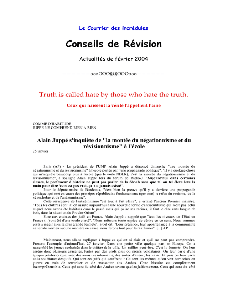 arrêter de jouer les victimes de l’Holocauste". Libération du 27 janvier 2004.