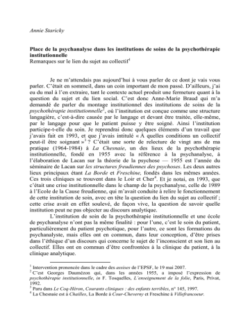 Annie Staricky Place de la psychanalyse dans les institutions de