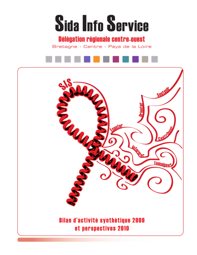 Sida Info Service Délégation régionale centre-ouest S Bretagne - Centre - Pays de la Loire IS ir O r i e nter S en out ibu er uter o c É C ont r Inf orm er r Tém o i g n e Bilan d’activité synthétique 2009 et perspectives 2010 SOMMAIRE Introduction 3 Sida Info Service National 4 Délégation régionale : missions 7 Délégation régionale : vie de l’association 10 Manifestations grand public 14 EMIPS 44 16 Comité 1er décembre 18 Interventions et formations en CFA 20 Actions HSH 22 Public migrants 24 Public libertins 25 Conclusion 26 INTRODUCTION Le présent document présente de manière succincte les différentes missions de la Délégation Régionale Centre-Ouest de l’association Sida Info Service au titre de son activité ordinaire dans les régions Bretagne et Pays de la Loire. Le présent cahier des charges repose sur différents documents et programmations de santé publique au niveau national et local et plus particulièrement renvoie : • aux données épidémiologiques nationales et des régions Bretagne, Centre et Pays de la Loire en matière de VIH et VHC, • aux orientations ministérielles relatives aux orientations prioritaires dans le domaine de la lutte contre le sida (Mission RDRs…), • aux instructions ministérielles relatives à la mise en œuvre de la loi d’orientation en matière de lutte contre les exclusions, • à la circulaire ministérielle portant création d’Équipe Mobile d’Information et de Prévention Sida (EMIPS), • aux Programmes Régionaux de Santé Publique (PRSP). Introduction 3 Association Sida Info Service National L’association Sida Info Service (loi du 1er juillet 1901) a été créée le 23 octobre 1990 par l’Agence Française de Lutte contre le Sida (AFLS) en partenariat avec AIDES. L’objectif était de renforcer le dispositif de lutte contre le sida en créant une ligne téléphonique nationale et gratuite accessible en permanence, à partir de l’expérience de AIDES et des résultats obtenus dans d’autres pays européens. Dès sa création, SIS est conçue comme une structure régionalisée, dont l’organisation permet d’adapter les réponses aux réalités sociologiques et démographiques locales et territoriales tout en assurant la visibilité de l’écoute et de l’aide à distance ainsi que les opérations conduites au niveau national. Aujourd’hui, SIS dispose de trois pôles d’écoute : Grenoble, Montpellier et Paris et de sept délégations : Bordeaux, Cayenne, Lille, Marseille, Nantes, Nice, et Strasbourg. Chargée d’une mission de service public dans le domaine du VIH/sida, SIS prend progressivement en compte l’ensemble des Infections Sexuellement Transmissibles (IST), puis les hépatites et, enfin, les champs connexes à la santé sexuelle : orientation sexuelle, lutte contre les discriminations, droit des personnes atteintes, droit des malades. SIS saisit très vite l’intérêt des nouvelles technologies. Son site internet, créé en 1997, fournit en temps réel l’actualité concernant le VIH/sida, les hépatites et la santé sexuelle. Un service de réponse en ligne y est proposé : les écoutants de SIS répondent au courriel des internautes, gratuitement, sous 48 heures, et en toute confidentialité. Le site offre également des forums de discussion, « chats » et blogs en direction des personnes atteintes. L’appel d’un numéro vert n’étant pas gratuit depuis un portable, SIS lance en 2007 le « Web Call Back », un service qui permet aux internautes d’être rappelés gratuitement après avoir laissé leur numéro sur le site web. Les missions nationales de l’association Sida Info Service Au titre des objectifs nationaux définis dans le contrat d’objectif de la DGS, prorogé par l’INPES autour de l’activité principale de Sida Info Service comprenant trois lignes nationales de téléphonie sanitaire et sociale – Sida Info Service, Hépatites Info Service, et Ligne Azur - et trois sites Internet (www.sida-info-service.org, www.hepatites-info-service.org, www.ligneazur. org), l’association a les missions suivantes : • • Écouter : Sans jugement, ni tabou - anonymat, confidentialité, disponibilité et professionnalisme des écoutants de SIS. Informer : Exactitude des informations données - actualisation et formation des professionnels de SIS. • • • • Soutenir : Avec l’appui de leur expérience et de leur déontologie, les écoutants ont un savoir-faire qui les met en position d’aider leurs interlocuteurs pour comprendre, entendre et trouver des solutions. Orienter : Annuaire national d’orientation, très régulièrement mis à jour. Témoigner : Recueil des questionnements, des témoignages des appelants depuis 1990. Lieu d’observation et d’expertise ayant un rôle d’alerte en matière de santé sexuelle. Contribuer : Restitution des problématiques abordées lors des appels, des évolutions constatées ainsi que des informations sur les caractéristiques des usagers, des notes d’information ou de synthèse, ainsi que des études sur les points à approfondir pour aider aux réflexions en cours, répondre à des situations nouvelles - formation des acteurs sociaux. Sida Info Service en 2008 : quelques chiffres cf : rapport national d’activités 2008. • Sida Info Service : 0800 840 800 - 107 214 entretiens. - 3 appelants sur 5 contactent SIS pour la première fois. - 7 appelants sur 10 sont des hommes. - L’âge moyen des appelants est de 32 ans. - L’orientation sexuelle est évoquée dans les ¾ des entretiens. - 3 entretiens sur 5 concernent les risques de transmission, suivi du dépistage. - 5 984 entretiens concernent des personnes vivant avec le VIH. - Les IS T autres que le VIH sont évoquées dans 4626 appels. • Sida Info Service : www.sida-info-service.org - 14 065 questions posées via le site internet. - 54,6 % sont des hommes. - L’âge moyen des internautes est de 28 ans et demi pour les hom- mes et 31 ans e
