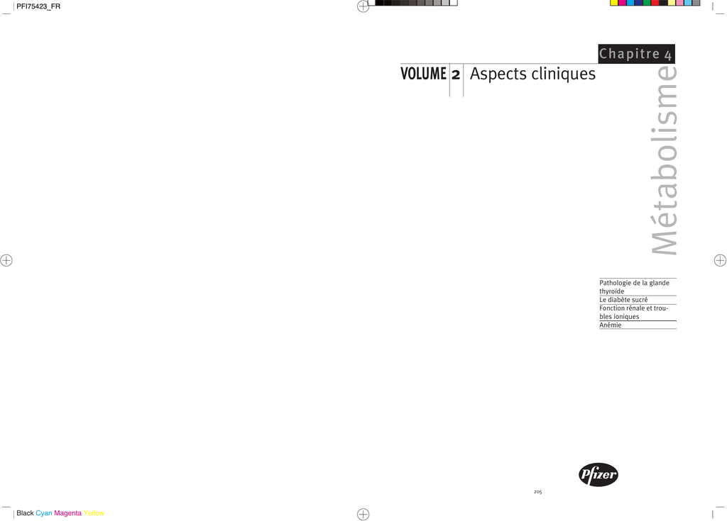 PFI75423_FR VOLUME 2 Aspects cliniques Métabolisme Chapitre 4 Pathologie de la glande thyroïde Le diabète sucré Fonction rénale et troubles ioniques Anémie 205 Black Cyan Magenta Yellow PFI75423_FR Pathologie de la glande thyroïde P. Nève A. Introduction La pathologie thyroïdienne est loin d’être exceptionnelle chez la personne âgée. La symptomatologie de l’hyperthyroïdie est souvent discrète et ne se manifeste parfois que par des troubles du rythme cardiaque. La prévalence de la thyroïdite chronique auto-immune augmente avec l’âge et est responsable de la forme la plus répandue d’hypothyroïdie de l’adulte. Les symptômes de cette dernière sont facilement à tort confondus avec ceux d’un vieillissement normal. La glande thyroïde exerce, grâce aux hormones T4 et T3 qu’elle synthétise et secrète, une action modulatrice sur toutes les cellules de l’organisme en agissant par l’intermédiaire de la T 3 essentiellement sur la chaîne de phosphorylation oxydative intramitochondriale. Le niveau de fonctionnement physiologique de la glande thyroïde est sous la dépendance de l’axe hypothalamo-hypophysaire avec sécrétion de TRH hypothalamique et de TSH hypophysaire; le tout est régi par un contrôle de style “feed back” médié essentiellement par les taux de T3 sérique produite par la thyroïde (figure 1). B. Rappel de la physiologie thyroïdienne de l’adulte Si la thyroxine et la T3 sont les hormones iodées produites par la thyroïde, ces dernières sont préalablement stockées dans une protéine de grand poids moléculaire appelée thyroglobuline, qui constitue le composant principal de la colloïde. Cette thyroglobuline est synthétisée au niveau des thyrocytes avant d’être sécrétée dans la lumière folliculaire. L’iode résorbé au niveau intestinal va être spécifiquement capté par les thyrocytes sous forme d’iode inorganique. Ce dernier va passer très rapidement de la base cellulaire jusqu’à la membrane apicale où son organification assurée par une peroxydase conduira à la maturation iodée de la thyroglobuline. Cette dernière constitue une réserve majeure de matériel préhormonal iodé. Sans entrer dans les détails, sous l’action de la TSH pituitaire, les thyrocytes vont résorber par macrophagocytose ou micropinocytose des portions de colloïde, qui vont subir une thyroglobulinolyse médiée par l’activation lysosomiale thyrocytaire. Cette dernière assure la séparation de la T4 et de la T3 du squelette macromoléculaire de thyroglobuline endocytée : la sécrétion hormonale qui s’ensuit dans la lumière des capillaires est réalisée très rapidement. On estime qu’entre le moment où la TSH se lie sur le récepteur thyrocytaire et le moment où les hormones commencent à être sécrétées, trois minutes se sont écoulées. La figure 2 reprend les étapes capitales de la synthèse et de la sécrétion hormonale. L’expression finale de la fonction thyroïdienne dépend : du transport de l’hormone jusqu’à son tissu cible; du métabolisme de l’hormone thyroïdienne par les tissus périphériques. 206 Black Cyan Magenta Yellow PFI75423_FR A cet égard, la T4 sert de prohormone devant être convertie en T3 qui est l’hormone finale active allant pénétrer dans les cellules pour aller se lier en ordre principal sur des récepteurs nucléaires. de la capacité des tissus cibles de répondre au message métabolique convoyé par l’hormone thyroïdienne. Des anomalies de ce dernier mécanisme conduisent aux rares cas décrits de résistance périphérique aux hormones thyroïdiennes. Incidemment, il est peut-être utile de signaler qu’au cours de ces dernières années, on a pu démontrer que le récepteur à la T3 correspondait à du matériel codé par l’oncogène C-erb-A dont les gènes sont localisés sur les chromosomes 3 et 17. Après sécrétion par la glande, les hormones thyroïdiennes se lient à des protéines transporteuses : en ordre principal, la TBG (thyroxin-binding globulin), la TBPA (thyroxine binding prealbumin) et l’albumine. La concentration plasmatique de ces transporteurs principalement produits par le foie est particulièrement sensible à des altérations de l’état de santé, qu’elles soient inflammatoires, néoplasiques, ou à la prise de contraceptifs ou d’hormones autres (tableau 1). De toute manière, l’activité hormonale au niveau des cellules périphériques ne dépend pas de la quantité totale d’hormones circulantes mais bien de la fraction libre, c’est-à-dire cette petite fraction d’environ 3 pour mille de thyroxine non liée aux transporteurs spécifiques. Beaucoup moins de T3 est sécrétée par la glande. En effet, le site principal de production de T3 se trouve en dehors du tissu thyroïdien; la production de T3 est réalisée par la conversion de T4 en T3 catalysée par une enzyme ubiquitaire, la T4-5'-déiodinase. Une autre enzyme, la T4-5-déiodinase produit la reverse-T3, qui n’a aucune activité hormonale. Comme le démontre la figure 3, grand nombre de facteurs peuvent interférer sur l’activité de la 5'-déiodinase. C’est ainsi que les ingestions d’hydrates de carbone représentent le déterminant majeur de l’activité de la 5'-déiodinase. Par contre, cette activité est déprimée par le jeûne, par la survenue de maladies aiguës, par la prise de certains médicaments comme les b-bloquants, les corticoïdes et l’amiodarone. De par leur contenu, important en iode, la réalisation d’une cholécystographie ou d’une angiographie entraînera le même effet inhibiteur. Si en fonction de ce qui a été mentionné plus haut, une affection aiguë peut accroître les taux sériques de T4, par contre les maladies chroniques sévères vont entraîner un syndrome dit de “T4 basse” avec des taux normaux ou légèrement élevés de T4 libre. Ce syndrome serait causé par des inhibiteurs circulants de T4 qui se lieraient