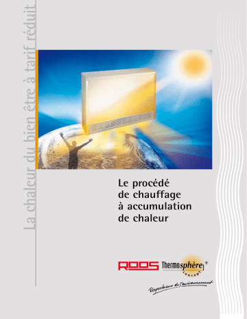 La chaleur du bien être à tarif réduit Le procédé de chauffage à accumulation de chaleur R Confortable et économique 2 Le procédé de chauffage Thermosphère® La consigne flottante du procédé de régulation breveté Thermosphèreengendre Forme de la Courbe de charge du réseau électrique pendant les jours d’hiver les avantages suivants: Une Faible consommation d’énergie* L’énergie consommée par les procédés de chauffage 1 à accumulation équipés de régulateurs classiques est 2 2 réduite jusqu’à 50% par: La suppression de l’inconfort et des surchauffes des procédés classiques à sonde extérieure ou à consigne de température intérieure fixe. La diminution du gradient de température Sol /Plafond 1 et l’amélioration de l’homogénéité des températures dans la pièce à chauffer. La régulation précise de la température ambiante et l’optimisation de la température réduite Une réduction importante des transferts de chaleur 2 Les panneaux rayonnants, convecteurs, sèche-serviettes apportent l'appoint si necessaire dans les autres pièces. J’affiche ma température de confort dans chaque pièce, Thermosphère fait le reste. 1 Les accumulateurs dans les pièces de jour et le hall diffusent la chaleur de base par rayonnement à l'ensemble du logement. entre les différents logements d’un immeuble. 4:00 8:00 12:00 16:00 20:00 24:00 L’exemple de la courbe de charge du réseau de distribution visualise sur 24 heures les écarts importants des appels de puissance selon les heures. Une très importante réduction des consommations d’énergie primaire et de l’émission de CO2 correspondante sont obtenues en lissant cette courbe. Thermosphère transfère les consommations durant les heures chargées vers les heures à faible charge du réseau. Thermosphère limite la consommation d’énergie aux besoins réels de l’utilisateur en tenant compte de l’énergie enveloppante, vous apportera le confort durant de stockée dans le bâti et des apports gratuits de chaleur nombreuses années. (Intérieures, Solaire,…). **** à partir de 4 €/m²/an pour le collectif et 5,50 €/m²/an * A partir de 35 kWh/an / m² pour un logement collectif pour le pavillon individuel (isolation thermique CEI des isolé cf. à la RT 2005 années 80). Une installation et une utilisation simple Le procédé de chauffage Thermosphère pilote les extérieure ou à consigne intérieure car, l’action du appareils à accumulation de chaleur des pièces princi- régulateur sur la charge est corrigée et contrôlée pales, du hall et les appareils de chauffage direct des en permanence par la réaction de la température de autres pièces pour votre bien être et une économie la pièce à chauffer. (ne nécessite aucun réglage de Une utilisation optimale du tarif réduit maximale d’énergie primaire. pentes ou de consignes, ni de correction manuelle de des heures creuses** la charge) Le maximum d’énergie nécessaire et disponible est con- Les caractéristiques du régulateur Thermosphère sont 00:00 sommée durant les heures creuses à tarif réduit. dans les logements, les pavillons ou les locaux tertiaires neufs ou à rénover Les écarts variables entre puissance de l’accumulateur définies dans plusieurs brevets français et internatio- Les dérives de la température intérieure et l’inconfort naux (EP0670535, 9815638, EP1008922, 99403081…). des régulateurs classiques, engendrés par des charges Elles régulent automatiquement la charge des accumu- trop importantes ou insuffisantes sont ainsi évités. lateurs de chaleur et l’émission optimale de la chaleur Le rayonnement permanent des accumulateurs de Une puissance souscrite limitée*** stockée en fonction du niveau de confort souhaité, du chaleur est régulé avec précision par la consigne flot- 3 des 4 voies de délestage du procédé Thermosphère sont climat, des caractéristiques thermiques du bâtiment et tante. Il assure le chauffage de base du logement à dédiées au délestage progressif par 1/3 de la puissance de La diminution des consommations d’énergie des apports extérieurs gratuits de chaleur, selon une tarif réduit. chaque accumulateur. Ce procédé permet de souscrire une jusqu’à 30% par rapport à un chauffage central consigne de charge variable «flottante». Celle-ci assure La chaleur du bien être est obtenue par une chaleur puissance comprise le plus souvent entre 6 et 9 KVA, sans La chaleur est produite dans la pièce à chauffer. le meilleur coût d’exploitation en consommant douce et enveloppante issue du rayonnement et de la réduction de la température et du confort de la pièce à Les apports gratuits de chaleur réduisent voire l’énergie à tarif réduit. Elle est à la source du bien être. convection "inversée". Celle-ci est pilotée par le ther- chauffer même le jour le plus froid. coupent immédiatement les dispositifs qui restituent Elle intègre l’influence des variations de la chaleur mostat électronique de chaque pièce qui régule les la chaleur complémentaire nécessaire. stockée par le bâtiment. dispositifs de restitution de la chaleur stockée. *** Puissance souscrite = P. accumulateurs + P. Chauffe eau. Ces caractéristiques évitent les contraintes d’installa- Le procédé thermosphère est respectueux de notre La chaleur rayonnée en permanence par l’accumulateur tion et l’imprécision des régulations classiques à sonde environnement. Il évite de consommer l’énergie primaire est complétée, en diffusant l’air chaud au niveau du sol Ne contient pas de Gaz à effet de serre inutilement, pour du courant qui arrive nulle part. par convection “inversée“. La chaleur résultante, douce et L’entretien des accumulateurs de chaleur est réduit. ** 90 à 70 % sur la saison, selon la puissance installée des et pertes de chaleur de la pièce n’influencent plus la accumulateurs de chaleur du logement. précision de la