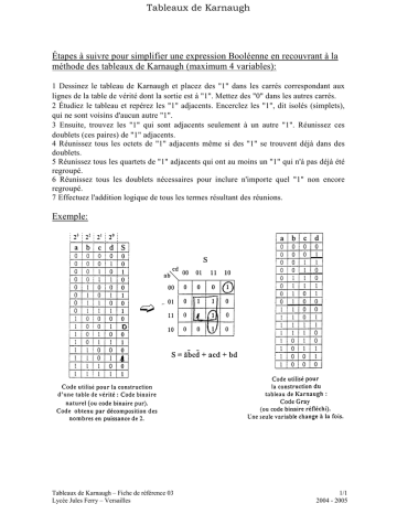 Tableaux de Karnaugh Étapes à suivre pour simplifier une
