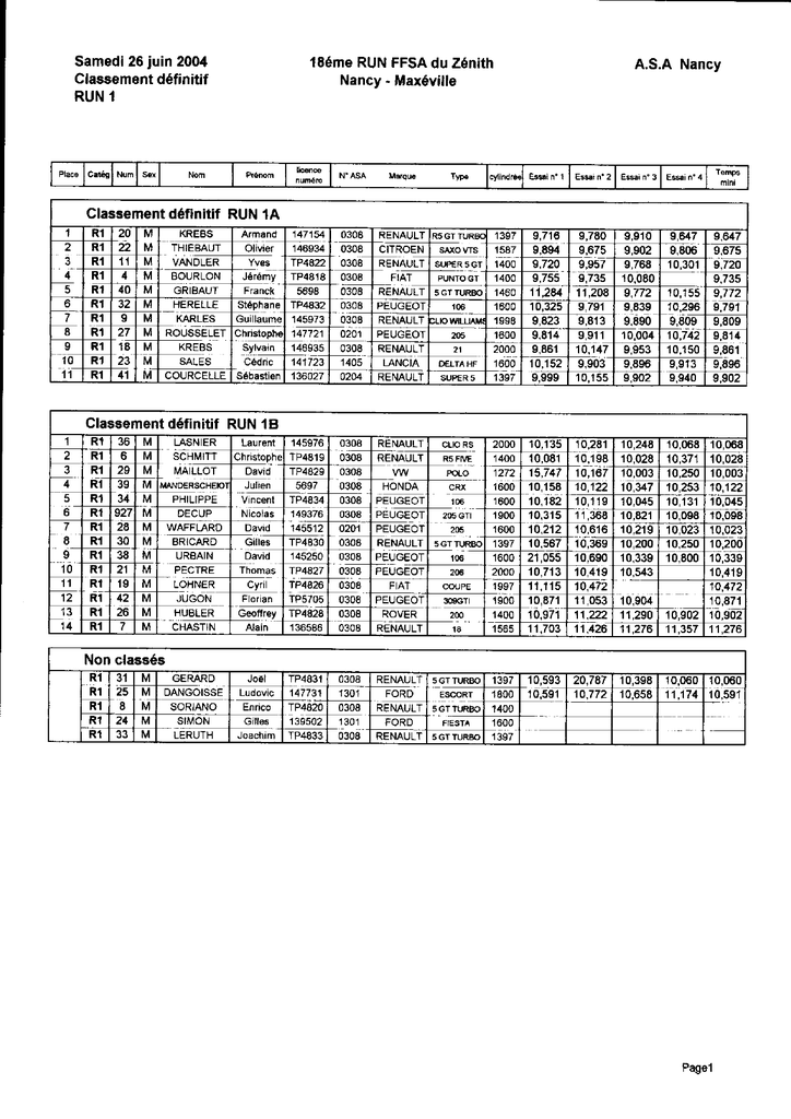 Samedi 26 juin 2004 Classement définitif RUN 1 lEéme RUN