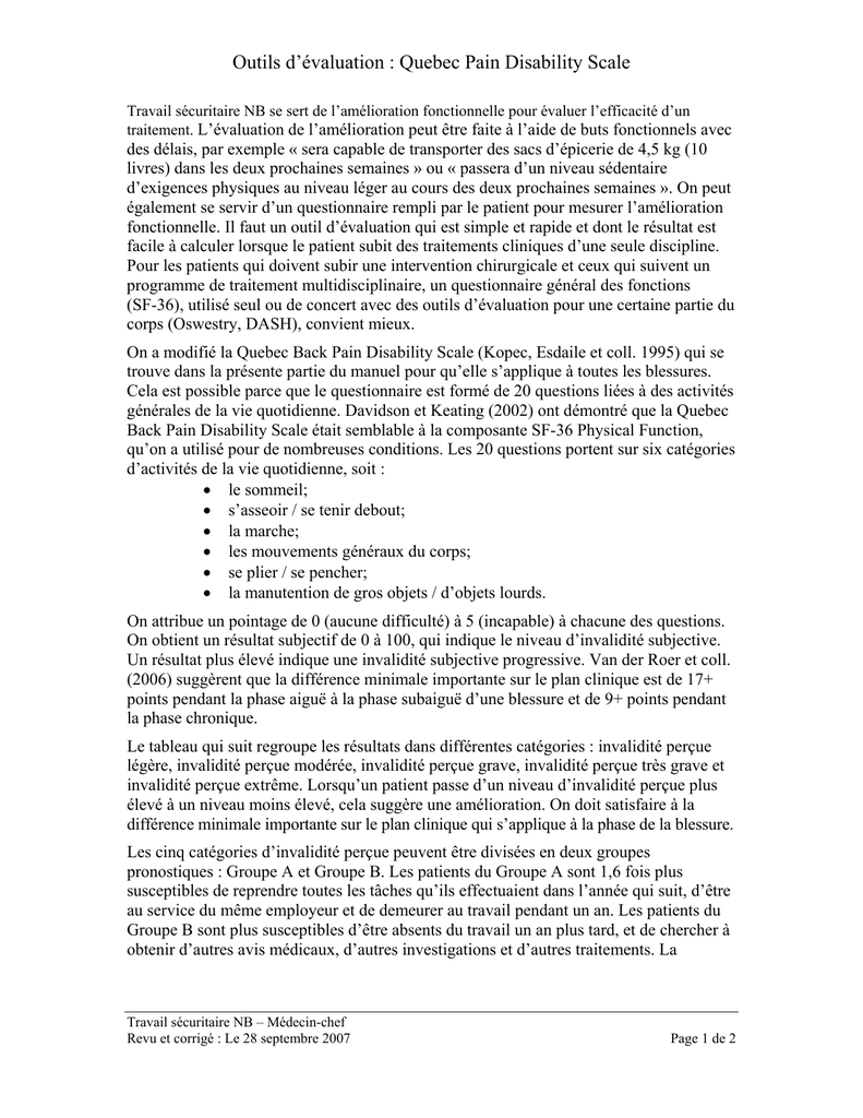 Outils d`évaluation : Quebec Pain Disability Scale