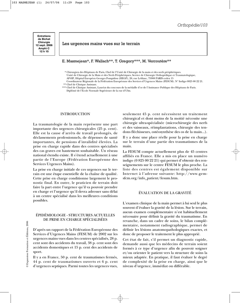 103 MASMEJEAN (1) - Service de chirurgie de la main, du membre