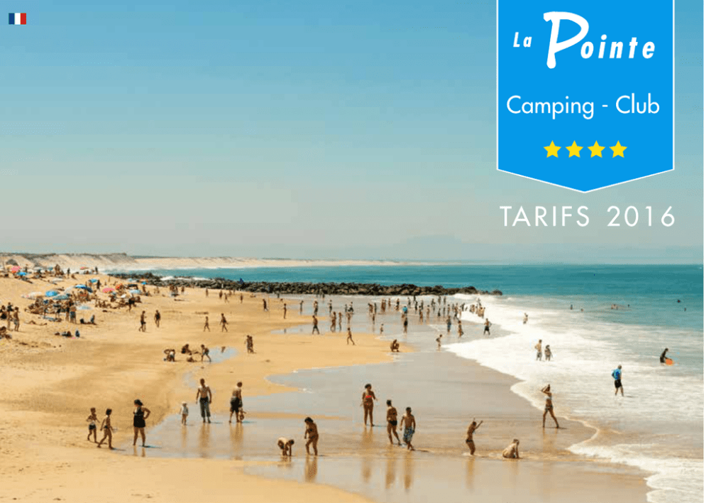 TA R I F S 2 0 1 6 Madame, Monsieur, Nous vous remercions de l’attention que vous portez à notre établissement et nous vous prions de trouver ci-joint notre documentation complète qui vous expliquera la démarche à suivre pour séjourner chez nous. En espérant vous accueillir très prochainement sur notre site, nous restons à votre entière disposition pour tout renseignement complémentaire et vous prions d’agréer, Madame, Monsieur, nos meilleures salutations. L’Équipe de EMPLACEMENTS EMPLACEMENTS EMPLACEMENTS Tarifs emplacements du 21/03 au 30/09/2016 Tarifs à la nuitée (de 14h à 12h) 6 pers. maxi (Jours d’arrivée et de départ libres) HORS SAISON BASSE SAISON HAUTE SAISON BASSE SAISON HORS SAISON du 21/03 au 26/06 du 27/06 au 10/07 du 11/07 au 21/08 du 22/08 au 04/09 du 05/09 au 30/09 18€ 22€ 30€ 22€ 18€ Adulte supplémentaire (+ 13 ans) 5€ 6,5€ 8€ 6,5€ 5€ Enfant supplémentaire (2 - 13 ans) 4€ 4€ 5€ 4€ 4€ Branchement électrique (10 Amp.) 4€ 4€ 5€ 4€ 4€ Tente supplémentaire 4€ 4€ 5€ 4€ 4€ Voiture supplémentaire (stationnement sur parking) 3€ 3€ 3€ 3€ 3€ Animal (tenu en laisse) 3€ 3€ 4€ 3€ 3€ 15€ 15€ 15€ 15€ 15€ Forfait 1 ou 2 pers. (empl. + 1 véhicule) Frais de réservation • Les réservations s’effectuent sans durée minimale de séjour en hors saison et basse saison et pour 7 nuits minimum en haute saison. • Séjour gratuit pour les enfants de moins de 2 ans au moment du séjour. • Animal autorisé : (sauf chien de catégorie 1 et 2) • Pour les branchements électriques pensez à prévoir un adaptateur pour prise européenne et une rallonge. • Taxe de séjour en supplément : 0,61€ / pers + 18 ans / jour (due à l’année). • Un seul véhicule par emplacement, un deuxième véhicule pourra être stationné sur un parking extérieur et, ce moyennant un surcoût de 3 euros par jour. LOCATIFS LOCATIFS Tithome – 2 personnes - 20 m² Descriptif - 1 chambre avec 1 lit 2 pers. 140 x 190 - 1 coin cuisine LOCATIFS - réfrigérateur - plaque de cuisson - vaisselle et batterie de cuisine - cafetière électrique - four micro-ondes - Salle d’eau / WC - Terrasse couverte SÉJOURS SEMAINES du 21/03 au 30/09 Du 02/07 au 27/08 : location du dimanche au dimanche uniquement (Arrivée : 16h - Départ : 11h) Du 21/03 au 26/06 du 26/06 au 03/07 du 03/07 au 10/07 du 10/07 au 31/07 du 31/07 au 21/08 du 21/08 au 28/08 du 28/08 au 04/09 du 04/09 au 30/09 230€ 360€ 520€ 630€ 785€ 630€ 420€ 230€ COURTS SEJOURS du 21/03 au 26/06 et du 04/09 au 30/09 minimum 2 nuits : jours d’arrivée (15h) et de départ (11h) Ancienneté du locatif : 2015 2 nuits 3 nuits 4 nuits 5 nuits 6 nuits 110€ 140€ 170€ 190€ 230€ • Frais de réservation : 15€ • Taxe de séjour 0,61€/jour (par personne de + 18 ans) Tithome – 4 personnes - 20 m² Hébergement sans sanitaire et non alimenté en eau Descriptif - 1 chambre avec 1 lit 2 pers. 140 x 190 - 1 chambre avec 2 lits 1 pers. 70 x 190 - 1 coin cuisine - réfrigérateur - plaque de cuisson - vaisselle et batterie de cuisine - cafetière électrique - four micro-ondes LOCATIFS SÉJOURS SEMAINES du 21/03 au 30/09 Du 02/07 au 27/08 : location du dimanche au dimanche uniquement (Arrivée : 16h - Départ : 11h) Du 21/03 au 26/06 du 26/06 au 03/07 du 03/07 au 10/07 du 10/07 au 31/07 du 31/07 au 21/08 du 21/08 au 28/08 du 28/08 au 04/09 du 04/09 au 30/09 210€ 315€ 470€ 575€ 680€ 575€ 350€ 210€ COURTS SEJOURS du 21/03 au 26/06 et du 04/09 au 30/09 minimum 2 nuits : jours d’arrivée (15h) et de départ (11h) Ancienneté du locatif : 2014 2 nuits 3 nuits 4 nuits 5 nuits 6 nuits 90€ 120€ 150€ 180€ 210€ • Frais de réservation : 15€ • Taxe de séjour 0,61€/jour (par personne de + 18 ans) Mobil-home 2 ch. 4/5 personnes - 27 m² Descriptif - 1 chambre avec 1 lit 2 pers. 140 x 190 - 1 chambre avec 2 lits 1 pers. 80 x 190 - 1 coin salon avec convertible 120 x 190 - 1 coin cuisine (réfrigérateur, plaque de cuisson, hotte aspirante, vaisselle et batterie de cuisine, cafetière électrique, four micro-ondes). LOCATIFS - 1 salle d’eau lavabo + douche - 1 WC séparé - 1 terrasse couverte SÉJOURS SEMAINES du 21/03 au 30/09 Du 02/07 au 27/08 : location du samedi au samedi, du dimanche au dimanche ou du mercredi au mercredi (Arrivée : 16h - Départ : 11h) Du 21/03 au 25/06 du 25/06 au 02/07 du 02/07 au 09/07 du 09/07 au 30/07 du 30/07 au 20/08 du 20/08 au 27/08 du 27/08 au 03/09 du 03/09 au 30/09 270€ 450€ 550€ 790€ 980€ 790€ 450€ 270€ COURTS SEJOURS du 21/03 au 26/06 et du 03/09 au 30/09 minimum 2 nuits : jours d’arrivée (15h) et de départ (11h) Ancienneté du locatif : - 6 ans 2 nuits 3 nuits 4 nuits 5 nuits 6 nuits 120€ 165€ 205€ 240€ 270€ • Frais de réservation : 15€ • Taxe de séjour 0,61€/jour (par personne de + 18 ans) Mobil-home 3 ch. 6/7 personnes - 32 m² Descriptif LOCATIFS - 1 chambre avec 1 lit 2 pers. 140 x 190 - 2 chambres avec 2 lits 1 pers. 80 x 190 - 1 convertible 120 x 190 (coin salon) - 1 coin cuisine (réfrigérateur, plaque de cuisson, hotte aspirante, vaisselle et batterie de cuisine, cafetière électrique, four micro-ondes). - 1 salle d’eau lavabo + douche - 1 WC séparé - 1 terrasse couverte SÉJOURS SEMAINES du 21/03 au 30/09 Du 02/07 au 27/08 : location du samedi au samedi, du dimanche au dimanche ou du mercredi au mercredi (Arrivée : 16h - Départ : 11h) Du 21/03 au 25/06 du 25/06 au 02/07 du 02/07 au 09/07 du 09/07 au 30/07 du 30/07 au 20/08 du 20/08 au 27/08 du 27/08 au 03/09 du 03/09 au 30/09 320€ 550€ 650€ 870€ 1150€ 870€ 550€ 320€ COURTS SEJOURS du 21/03 au 26/06 et du 03/09 au 30/09 minimum 2 nuits : jours d’arrivée (15h) et de départ (11h) Ancienneté du locatif : - 6 ans 2 nuits 3 nuits 4 nuits 5 nuits 6 nuits 160€ 215€ 260€ 295€ 320€ • Frais de réservation : 15€ • Taxe de séjour 0,61€/jour