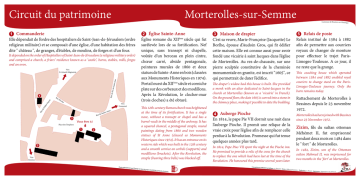Circuit du patrimoine 1 Morterolles-sur-Semme Commanderie Elle dépendait de l’ordre des hospitaliers de Saint-Jean-de-Jérusalem (ordre religieux militaire) et se composait d’une église, d’une habitation des frères dite " château ", de granges, d’étables, de moulins, de forges et d’un four. It depended on the order of Hospitallers of Saint-Jean-de-Jérusalem (a religious military order) and comprised a church, a friars’ residence known as a ‘castle’, barns, stables, mills, forges and an oven. 2 Église Sainte-Anne Église romane du XIIème siècle qui fut surélevée lors de sa fortification. Nef unique, sans transept ni chapelle, voûtée d’un berceau en plein cintre, chœur carré, abside pentagonale, peintures murales de 1860 et deux statues de Sainte-Anne en bois (classées aux Monuments Historiques en 1974). Portail ouest du XIIème siècle et corniche plate sur des corbeaux et des modillons. Après la Révolution, le clocher-mur (trois cloches) a été obturé. This 12th-century Roman church was heightened at the time of its fortification. It has a single nave, without a transept or chapel and has a barrel-vault in the middle of the archway. It has a squared chancel, a pentagonal steeple, mural paintings dating from 1860 and two wooden statues of St Anne (classed as Monuments Historiques since 1974). It has an entrance on its western side which was built in the 12th century and a smooth cornice on corbels (supports) and modillions (brackets). After the Revolution, the steeple (bearing three bells) was blocked off. Projet subvention né par l’Europe a u titre du proj et LEADER de la Marche Occ 3 Maison de drapier The draper’s widow had this house is built. She provided a monk with an altar dedicated to Saint-Jacques in the church at Morterolles (known as a ‘vicairie’ in French). On the ground floor, the date 1605 is carved into a stone in the chimney place, making it possible to date the building. Auberge Pioche En 1814, le pape Pie VII dormit une nuit dans l’auberge Pioche. Il promit une relique de la vraie croix pour l’église afin de remplacer celle perdue à la Révolution. Promesse qui fut tenue quelques années plus tard. In 1814, Pope Pius VII spent the night at the Pioche inn. He promised to provide a relic of the cross for the church to replace the one which had been lost at the time of the Revolution. He honoured this promise several years later. Conception et réalisa tion graphique : A. D itane. 5 C’est sa veuve, Marie-Françoise (Jacquette) Le Borlhe, épouse d’Audoin Gros, qui fit édifier cette maison. Elle est connue aussi pour avoir fondé une vicairie à saint Jacques dans l’église de Morterolles. Au rez-de-chaussée, sur une pierre sculptée constitutive de la cheminée monumentale en granite, est inscrit "1605", ce qui permettrait de dater l’édifice. 4 Commune de Bessines-sur-Gartempe urand - Textes : Offi Relais de poste Relais institué de 1584 à 1882 afin de permettre aux courriers royaux de changer de monture pour effectuer le trajet ParisLimoges-Toulouse. A ce jour, il ne reste que la grange. This coaching house which operated between 1584 and 1882 enabled royal couriers to change steed on the ParisLimoges-Toulouse journey. Only the barn remains today. Rattachement de Morterolles à Bessines depuis le 23 novembre 1972. Morterolles has been joined with Bessines since 23 November 1972. Zizim, fils du sultan ottoman Méhémet II, fut emprisonné pendant deux mois en 1484 dans le " fort " de Morterolles. In 1484, Zizim, son of the Ottoman sultan Mehmed II, was imprisoned for two months in the ‘fort’ at Morterolles. ce de Tourisme - T raduction : C.Hewit t - Impression : Empreinte 05 62 18 83 33.