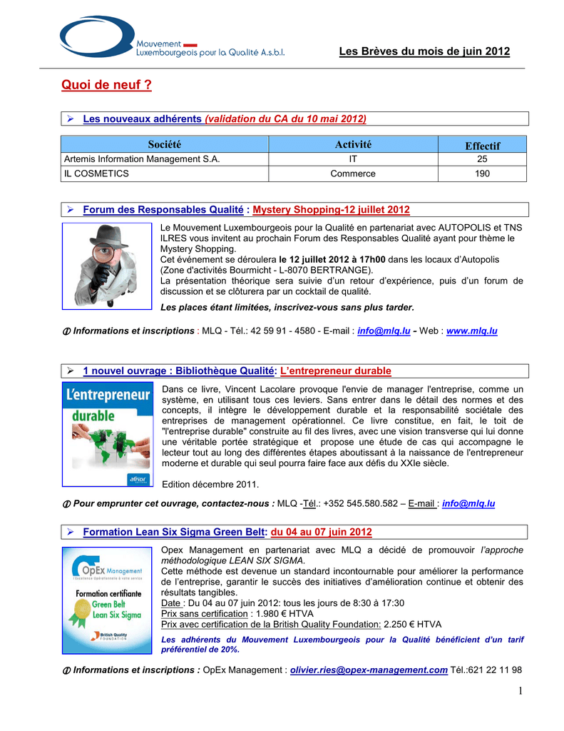 Quoi de neuf - Mouvement luxembourgeois pour la Qualité et l