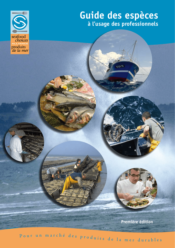 Guide des espèces à l’usage des professionnels Première édition Pour un marché des produit s de la mer durables Sommaire Introduction . . . . . . . . . . . . . . . . . . . . . . . . . . . p. 4 Méthodologie . . . . . . . . . . . . . . . . . . . . . . . . . . p. 6 Consommation . . . . . . . . . . . . . . . . . . . . . . . . . . Questions clés à poser à votre fournisseur . . . . . . . p. 8 p. 14 Fiches espèces Direction de la publication : Elisabeth Vallet Poissons . . . . . . . . . . . . . . . . . . . . . . . . . . . . . p. 16 Rédaction : Marie-Christine Monfort (Marketing Seafood) Anchois - Anguille - Bar - Baudroie - Barbue - Cabillaud - Chinchard - Colin d’Alaska - Congre - Comité de rédaction : Alliance Produits de la mer/Seafood Choices Alliance Daurade et Dorade - Églefin - Empereur - Espadon - Flétan noir et Flétan blanc - Grenadier Grondin - Hareng - Hoki - Lieu jaune - Lieu noir - Limande commune - Lingue franche et Lingue bleue Maquereau - Merlan - Merlu - Omble Chevalier - Pangasius - Perche du Nil - Plie - Raie - Requin - L’Alliance Produits de la mer/Seafood choices Alliance remercie vivement Rouget barbet - Saint Pierre - Sardine - Saumon - Sébaste - Sole - Tacaud - Thon albacore - tous ceux qui ont contribué à cet ouvrage : Hugues Autret (CNPMEM). Olivier Barbaroux. Eric Bernard (WWF). Patrice Besnard (Moulin marée). Charles Braine (WWF). Hubert Carré (CNPMEM). Annie Castaldo (ostréicultrice/CIVAM). Delphine Ciolek (CNPMEM). Christian Decugis (Prud’homie de Saint-Raphaël). Gérard Dehamme (Syndicat des mareyeurs boulonnais). Gilles Doignon (WWF). Benoît Guerin (CCR-S). Thierry Guigue (AGLIA). Nicolas Guichoux (MSC). Patrice Guillotreau (IRD). Béatrice Harmel (CRPMBN). Hollis Hope (SeaWeb). Jérôme Lazard (CIRAD). André Le Gall (Comité local des pêches du Nord-Finistère). Marine Levadoux (CIPA). Tony Lestienne (Chef - La Matelote). Jean-Jacques Lecomte (Auchan). François Marty. Dawn Martin (SeaWeb). Caroline Mangalo (CNPMEM). Stéphanie Mathey (Groupe Carrefour). Philippe Paquotte (Ofimer). Michel Peltier (Ofimer). Sandrine Polti (OCEANA). Dimitri Rogoff (NFM). Aymeric Chrzan (Syndicat des mareyeurs boulonnais). Elisabeth Tempier (Collectif Pêche et Développement). Ifremer (Institut français de recherche pour l’exploitation de la mer). Thon germon - Thon rouge - Tilapia - Truite - Turbot - Produits dérivés. Crustacés . . . . . . . . . . . . . . . . . . . . . . . . . . . p. 104 Araignée de mer - Crevette - Écrevisse - Homard - Langouste - Langoustine - Tourteau. Mollusques . . . . . . . . . . . . . . . . . . . . . . . . . . p. 120 Coquillages : Bulot - Petits coquillages - Coquille Saint-Jacques - Huître - Moule. Céphalopodes : Poulpe - Seiche - Encornet. Crédits photographiques : © Ifremer/Olivier Barbaroux. Sauf © PP11/131 : Elisabeth Vallet. P30 : Sea processors association, Alaska pollock fishery. P33 : Xavier Nicostrate. P42 : NORGE/NSEC/Eiliv Leren. P50-51 : hoki fishery/Nouvelle-Zélande. P53 : Benoît Guerin. PP55/87/109/123(portrait)/ 127(bas) : Marie-Christine Monfort. P56 : Hans Hillewaert. P61 (bas/droite) : Groupe Casino. PP66-67 : Philippe Cacot. P68-96 :Jérôme Lazard. P74 (bas) : Oceana/LX. P77 : Christian Decugis. P82 : NORGE/NSEC/Charmaine Chueng. P98 : CIPA. P99 : NORGE/NSEC/Yvonne Holth. P102 : Julia Roberson. P107 : Joey Brookhart/Seafood Choices Alliance. P117 : Bethany Versoy/V2 Visuals. P126 : P. Legranche. P148 : OSO Élevage de crevettes biologiques, Madagascar. Techniques de pêche et environnement . . . . . . . . p. 138 . . . . . . . . . . . . . p. 144 . . . . . . . . . . . . . . . . . . . . . . . . p. 150 . . . . . . . . . . . . . . . . . . . . . . . . . . . p. 158 Aquaculture et environnement . Cartographie . Conception graphique : Agence G COM Illustrations : Julien Valo Glossaire Copyright © Alliance produits de la mer – Avril 2008. Bibliographie . . . . . . . . . . . . . . . . . . . . . . . . p. 160 Guide 3 des espèces Introduction L En ce début de XXIe siècle, les trois quarts des populations de poissons de la planète sont exploitées au maximum ou surexploitées. es ressources marines ne sont pas illimitées. Nous connaissons aujourd’hui leur grande fragilité face aux modifications de l’environnement et à la pression de la pêche. Plusieurs espèces semblent déjà avoir disparu de la profondeur des océans sous l’effet d’une exploitation humaine trop intense. L’extraordinaire capacité naturelle des espèces marines à se renouveler peut être réduite, voire anéantie, dans le cas de pêches intensives. En ce début de XXIe siècle, les trois quarts des populations de poissons de la planète sont soit surexploitées, soit exploitées au niveau maximum. Plus près de nous, en Atlantique Nord-Est, près de 80 % des stocks sont surexploités et plus de 15 % sont épuisés. Les perspectives de croissance sont bien minces. L’aquaculture, qui représente une part croissante des approvisionnements mondiaux en produits aquatiques, semble offrir une solution. Pourtant, l’examen attentif de ces modes de production plus ou moins assistés met également en lumière les effets néfastes sur l’environnement de certains d’entre eux. Pendant ce temps, poissons, mollusques et crustacés continuent d’avoir la faveur des consommateurs. Au cours des deux dernières décennies, leurs qualités nutritionnelles ont été abondamment et efficacement mises en avant et la consommation croît régulièrement. Comment répondre à la fois à la forte demande en protéines aquatiques de qualité et à la nécessité de préserver la faune halieutique et d’encourager les pratiques durables ? Quelles espèces choisir ? se demandent les professionnels du secteur. Que faire ? Suspendre les achats des espèces en danger ? Les reporter vers d’autres espèces durables ? Quelles sont celles que nous devons épargner et celles que nous devons privilégier ? Données scientifiques L’univer