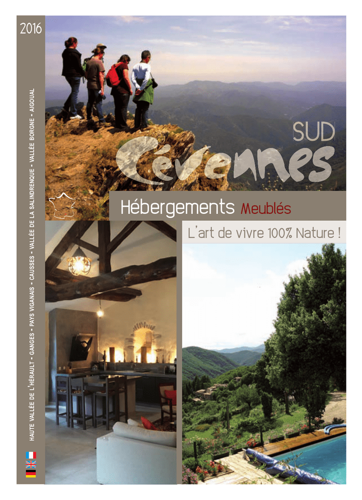 haute vallée de l’hérault - ganges - pays viganais - causses - vallée de la salindrenque - vallée borgne - aigoual 2016 Sud Hébergements Meublés L’art de vivre 100% Nature ! Bienvenue en Sud Shhh Listen… The soothing silence, barely disturbed by the tinkling bells of the herd returning to the barn, the rustle of the feather grass caught by the light breeze on the Causse ... Observatoire du Mont Aigoual Psst… Hören Sie die Stille... sie wird nur von den hellen Glöckchen der Schafe, die in den Stall zurückkehren unterbrochen. Begleitet von Jean-Charles, trafen wir heute einen Hirten, der uns seinen Beruf, seine Leidenschaft, und sein Leben vorstellte. Abends werden wir die Diskussion mit unserem Gastgeber fortzusetzen. Er gehört zu den Botschaftern der „Causses und Cevennes“. Diese Botschafter sind Freiwillige die dazu beitragen dieses, seit 2011 zum UNESCOWeltkulturerbe gehörende Gebiet, zu fördern und zu verteidigen. Today escorted by Jean-Charles, we met a shepherd. We learn about his trade, his passion, his life. Later with our host, a Tourism Ambassador of the Causses et Cevennes, we’ll carry on the conversation. Thanks to this network of volunteers that was formed to protect and promote the values attached to this territory, (registered as UNESCO World Heritage Site since 2011), we enter the heart of the Causses and the Cevennes. Tomorrow we leave early with Gael, a Cevennes National Park monitor, to meet mouflons (big horn mountain sheep). Let’s hope they are not too shy to be gazed at! You will always find the activity that suits you. When the evening come, we meet around a nice pie made of Cévennes own sweet onions, some Pélardon with a drizzle of honey,... all washed down with a glass of apple juice from Le Vigan apple or a nice AOP Languedoc wine! Listen, feel, see, smell, taste ... At the heart of a national park and a UNESCO World Heritagein South Cevennes, live your holiday like never before! Aber es ist jetzt Zeit, uns auszuruhen um Kraft zu tanken. Morgen werden wir sehr früh mit Gael in Richtung Nationalpark aufbrechen, um Mufflons zu beobachten. Ich hoffe, sie sind nicht zu schüchtern und lassen sich auch sehen! Nachher gibt es einen sportlichen Nachmittag mit einer ganzen Reihe von Aktivitäten im Freien! Jeder kann hier finden was ihm gefällt! Wir finden uns abends mit Freuden auf ein Glas AOP aus dem Languedoc zusammen, mit einem Zwiebelkuchen aus den einmaligen Süßzwiebeln der Cevennen, oder einem Stück Pelardon-Ziegenkäse mit oder ohne Honig... ohne natürlich die Maronen-Konfiture zu vernachlässigen, oder den berühmten Reinette -Apfelsaft aus Le Vigan. 2 Im Herzen des Naturschutzgebietes und dem von der Unesco ausgezeichneten Weltnaturerbe, erleben Sie hier mit allen Sinnen eine ganz aussergewöhnliche Ferienzeit. Cirque de Navacelles Sommaire Chut … Écoutez… le silence si doux, juste égayé par le tintement des cloches du troupeau qui rentre à l’étable, par le murmure de la brise qui fait danser les cheveux d’ange sur le Causse… Aujourd’hui accompagnés par Jean-Charles, nous sommes allés à la rencontre d’un berger. Nous avons découvert son métier, sa passion, sa vie. Plus tard, chez notre hôte, ambassadeur touristique des Causses et des Cévennes, nous poursuivrons la discussion. Grâce à ce réseau de volontaires qui s’est constitué, afin de défendre et promouvoir les valeurs attachées à ce territoire, inscrit au Patrimoine Mondial de l’UNESCO depuis 2011, on entre au cœur des Causses et des Cévennes. Demain nous partons de bonne heure avec Gaël, garde moniteur au Parc national des Cévennes, à la rencontre des mouflons. Souhaitons que ceux-ci ne soient pas trop timides et veuillent bien se laisser observer ! Après midi sportive avec tout un panel d’activités de pleine nature ! Vous trouverez forcément celle qui vous ressemble. Le soir nous nous retrouverons avec bonheur, autour d’une tarte à l’oignon doux des Cévennes, d’un morceau de Pélardon, accompagné d’un peu de miel, sans oublier… le tout arrosé d’un verre de jus de pomme de reinette du Vigan ou d’un joli AOP du Languedoc ! Grotte des Demoiselles Écouter, ressentir, observer, humer, savourer… Au cœur d’un Parc national et d’un territoire inscrit au patrimoine mondial de l’UNESCO en Sud Cévennes, vivez des vacances hors du commun ! Parc national des Cévennes The Cévennes National Park Cevennen National Park 4 Patrimoine mondial de l’Unesco 6 World Heritage UNESCO Weltkulturerbe Pictogrammes / Labels Pictograms Piktogramme 8 Marchés10 Markets Markets Meublés de tourisme Vacation rental Möblierte Ferienwohnungen 10 Villages vacances Holiday villages Feriendorf Gästezimmer 47 Produits du terroir Local products Lokale produkte 48 Offices de tourisme Tourist Offices Fremdenverkehrsämter 49 Carte Sud Cévennes Map Landkarte 50 3 The Cévennes National Park The Cevennes National Park was established in 1970. It is one of 10 national parks in France. The Cévennes National Park consists of two zones: the central zone and the membership zone. The central zone is the jewel of the Park, a quite exceptional territory that must be preserved for future generations. The Cévennes national Park was declared a UNESCO Biosphere Reserve in 1985. A Biosphere Reserve reconciles preserving biodiversity with promoting economic and social development and maintaining related cultural values. In 2011, it is the Mediterranean agro-pastoral cultural landscapes of Causses and Cévennes have been inscribed on the UNESCO list of World Heritage Der Nationalpark der Cévennen Der Nationalpark der Cévennen, 1970 gegründet, ist einer von zehn französischen Nationalparks. Dieses landschaftliche Kleinod besteht aus einer Kernzone – ein auβergewöhnliches Gebiet, das geschützt ist und auf dem darum bestimmte Regeln gelten – und aus einer Beitrittszone, die sich aus jenen Gemeinden zusammensetzt, die die Charta des Nati