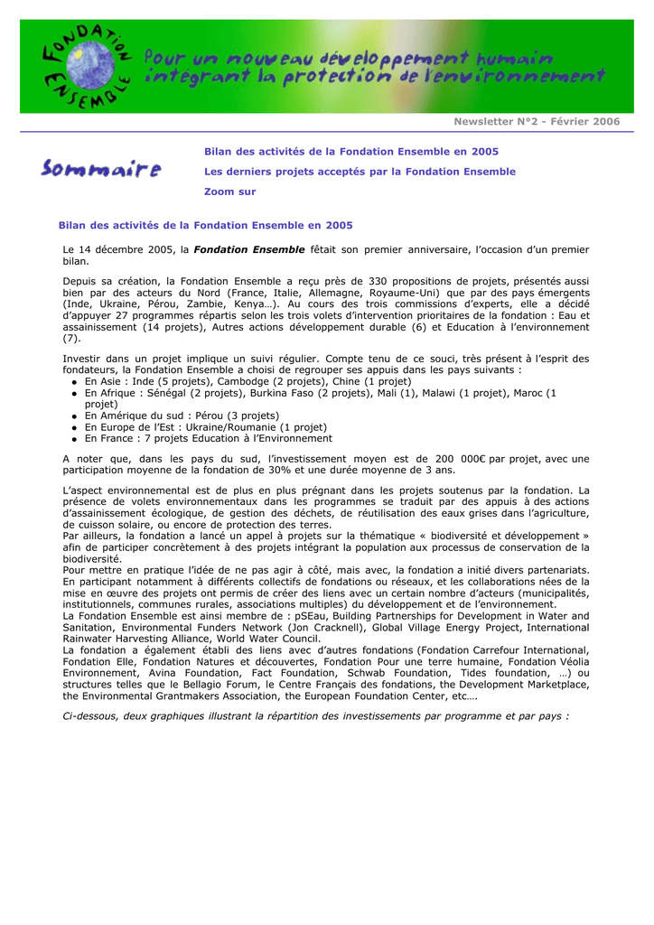 Février 2006 Bilan des activités de la Fondation Ensemble en 2005